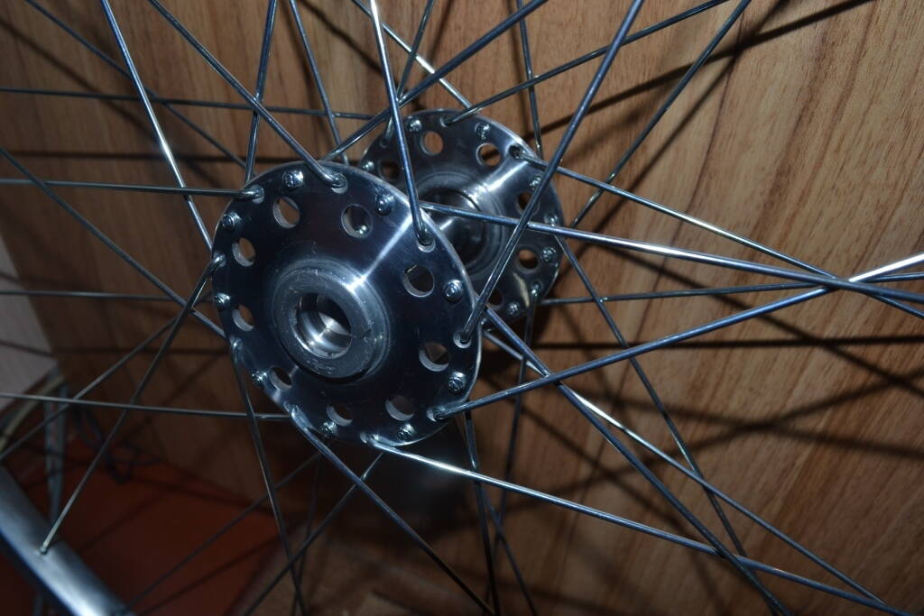 Значит купил я спицы, немного отшлифовал и заполировал обода и втулки. начал спицевать.