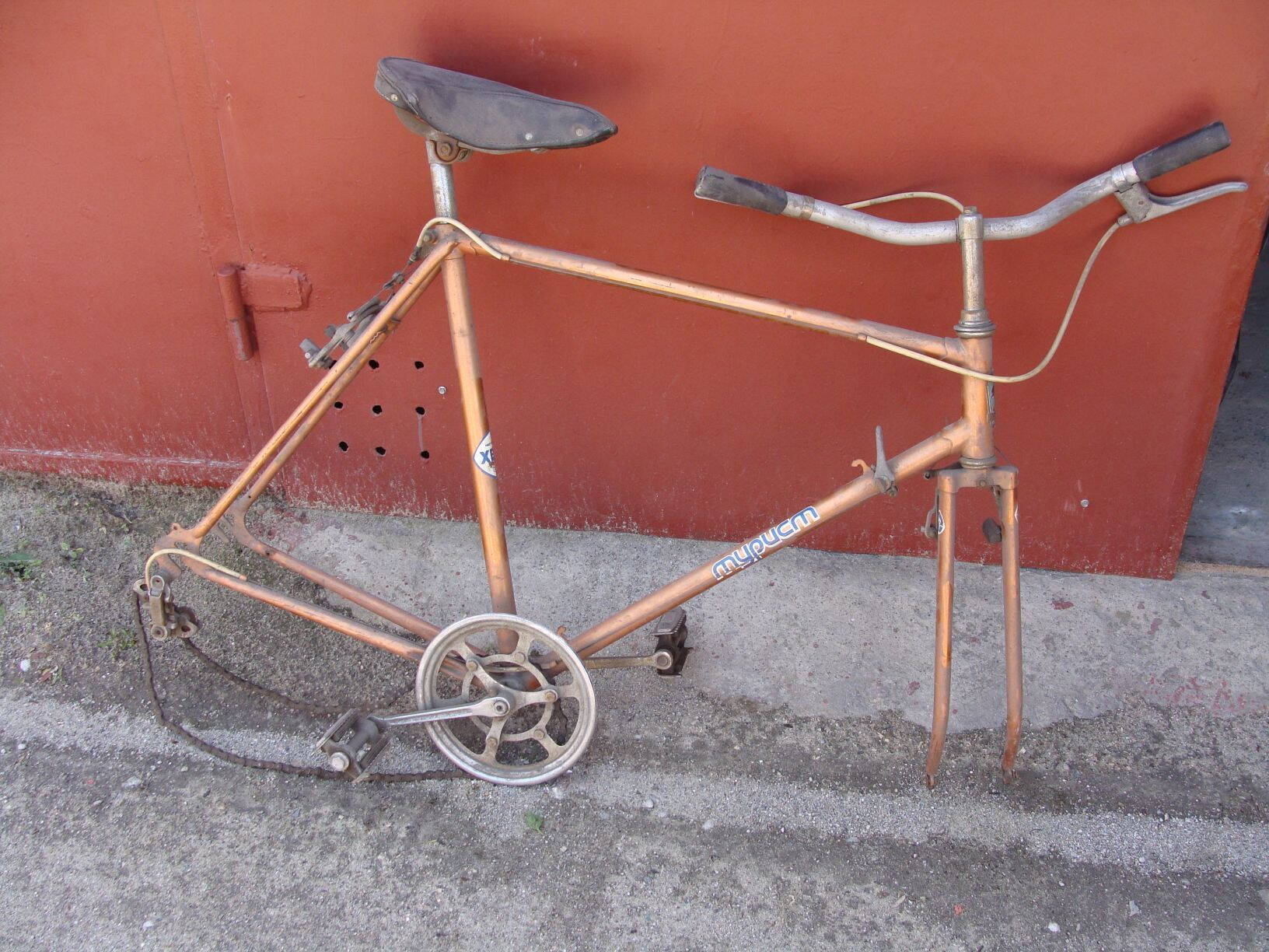 Ой как у меня руки чесались написать ) В общем, тут у меня недавно день рожденья случился, и один друг презентовал мне велик. Забрать его получилось только сегодня. Что там и в каком состоянии я не знал. Но когда увидел влюбился ) Оцените, подскажите правильное название, и тд и тп. Вобщем раскажите про него мне ) Из того что я увидел все в отличном состоянии. Перекрашивать однозначно не буду, мою чищю смазую вначале. Чем счищать ржавчину с рамы? и стоит ли подкрашивать? (Мануал Кисы читал может подзабыл еще перечитаю, но вроде там такого не было) Не хватает 1 катафота на педале, может у кого есть? Еще интересуют крылья на него, как должны выглядеть оригинал, и не трясутся ли они, может лучше поставить пластик? Со спицами я читал как это делается но както очкую может на перетяжку отдать или там впринципе не так страшно? Так же интересует мнение по поводу седла и покрышек, седло как восстановить? покрышки менять? и если да то на что? Фух. пока все ) сегодня праздную день рождения, так что на днях не до него будет ) но впереди неделя отпуска.