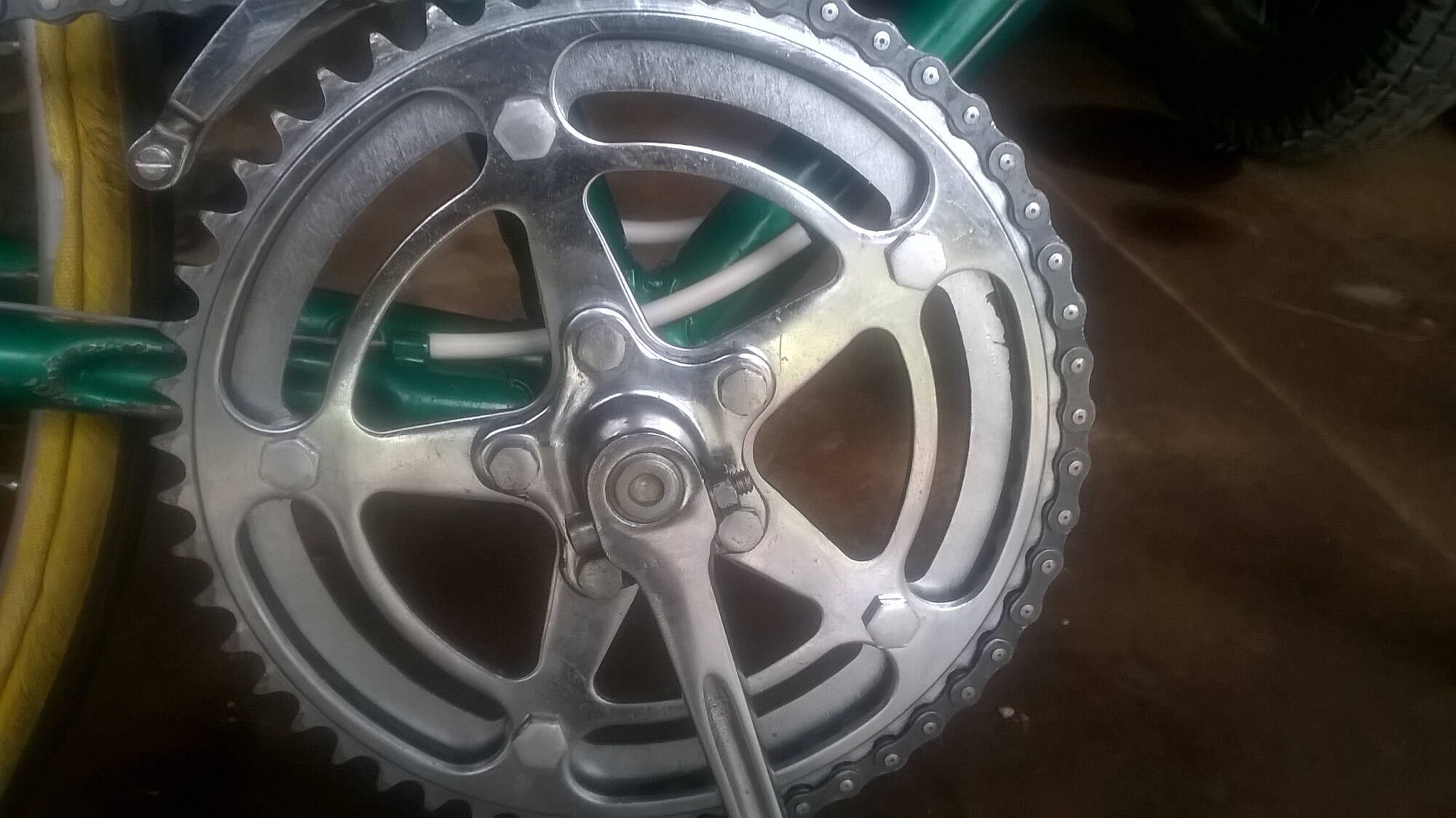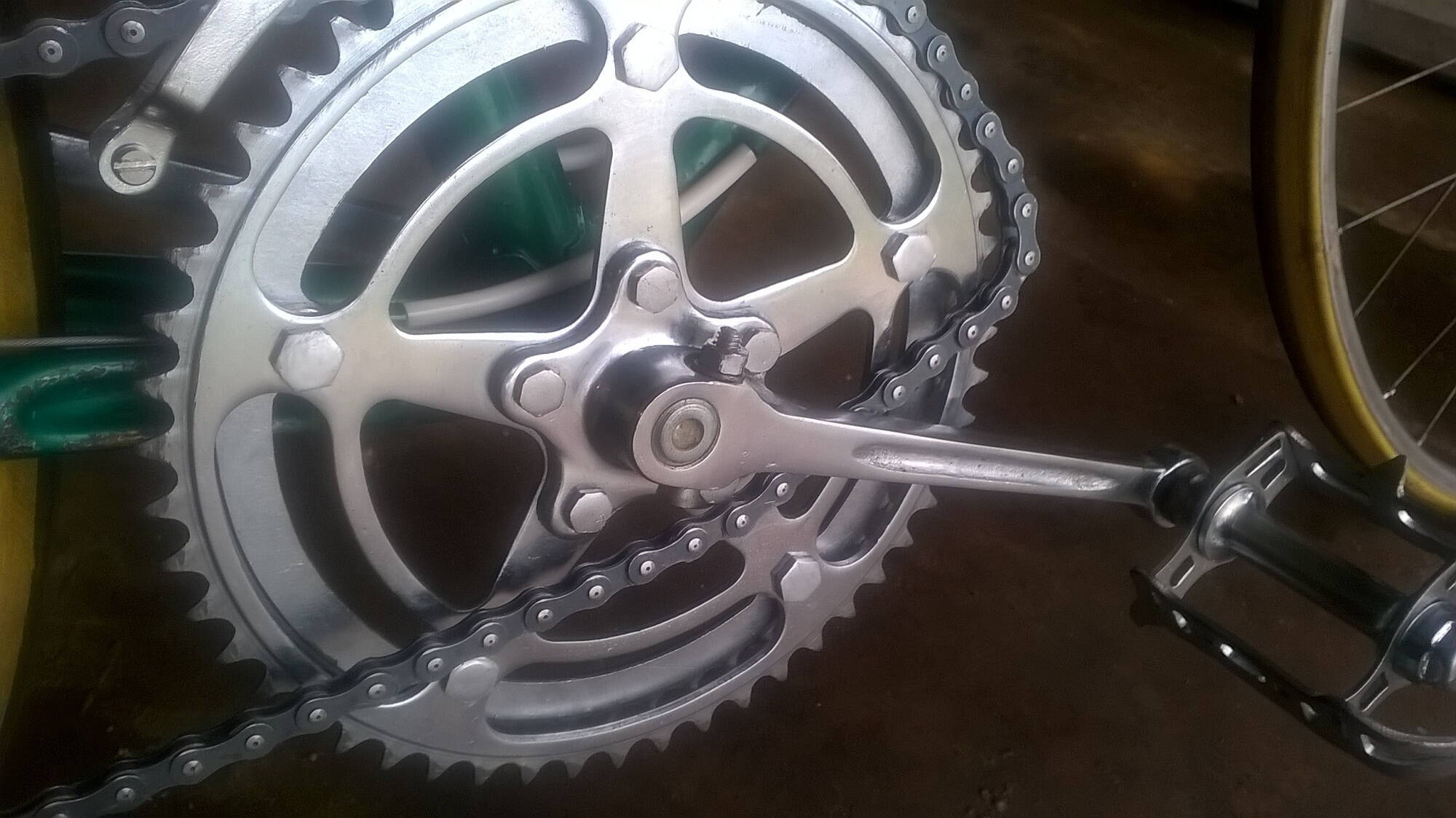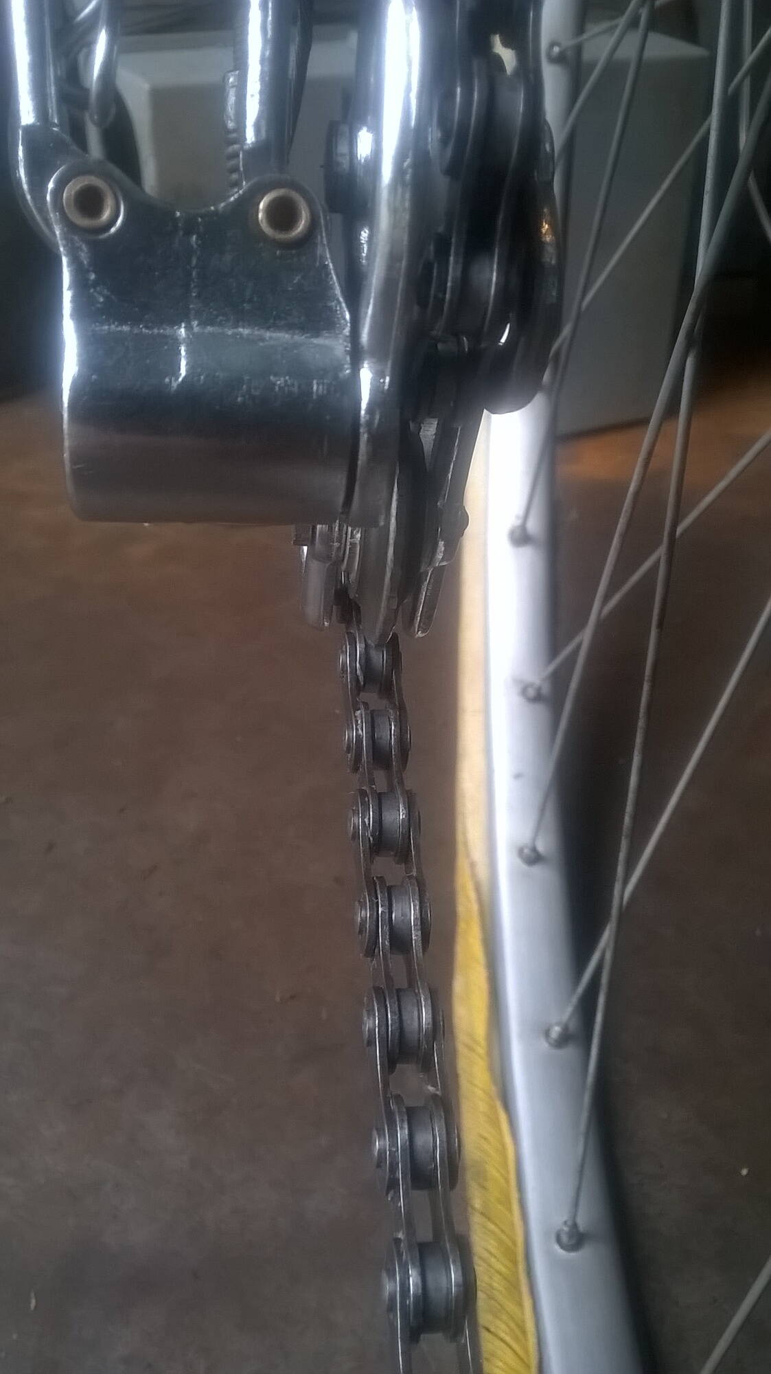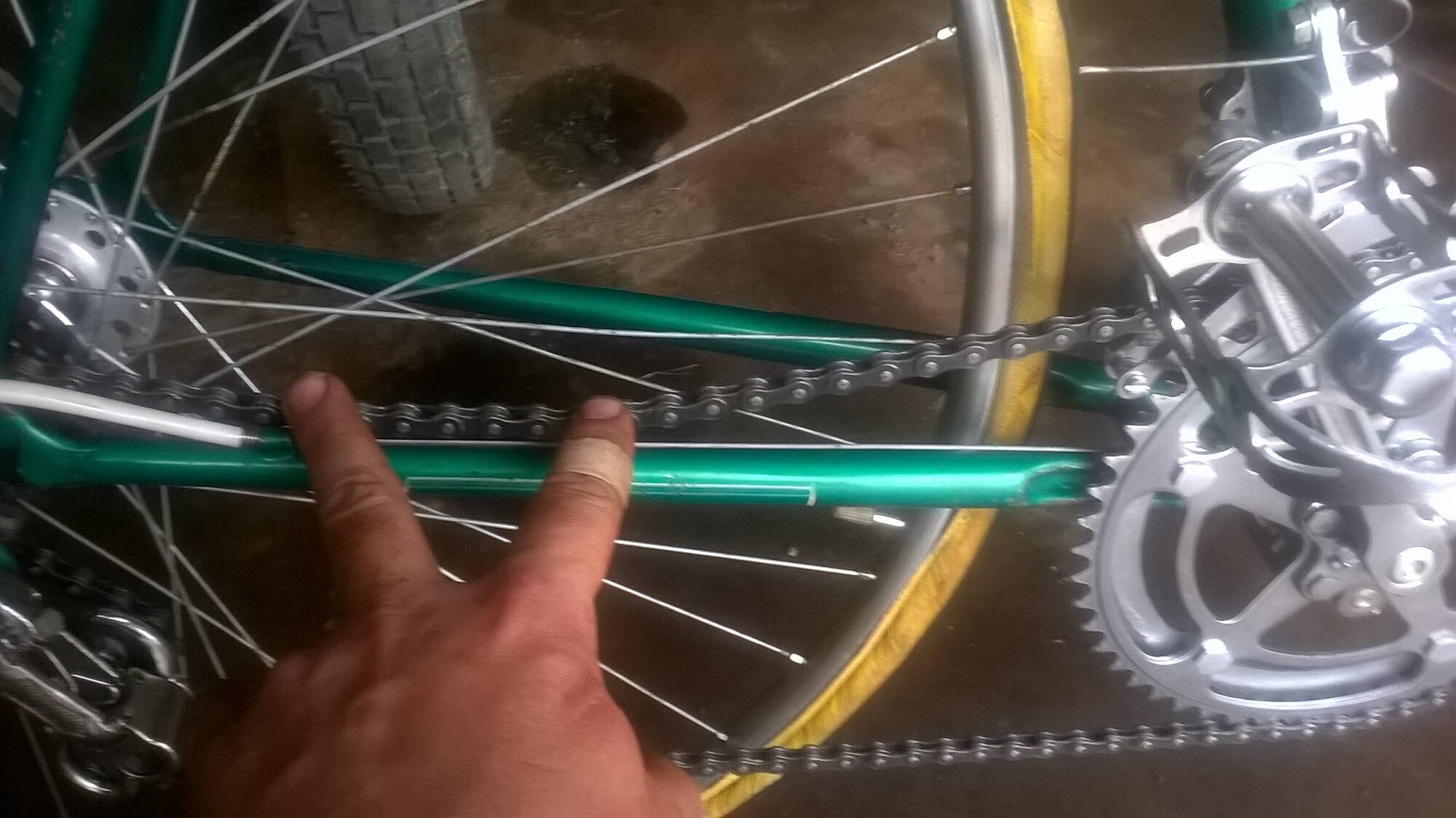 Комментарий к файлу: Если же педали от вращения удерживать рукой (ногами), то цепь в верхней части ОЧЕНЬ сильно провисает. До рамы и даже ниже. НА фото я показываю насколько сильно. Цепь вощеная по технологии мастера [b]Кисы[/b]. Это может быть причиной?
