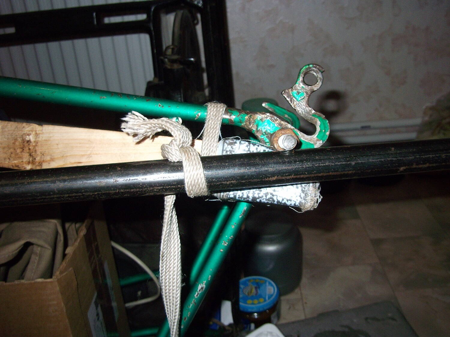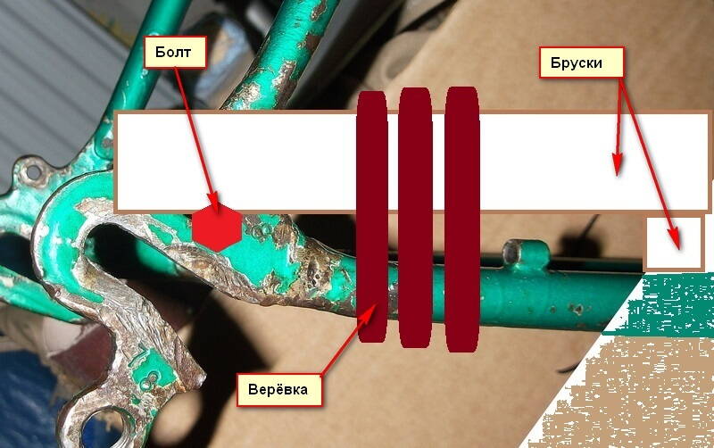 Стянул, но при разматовании веревки немного возвращается назад, думаю оставить на ночь может снимется память металла (или это все херня), вертикальные стоики тоже выровнить таким методом.