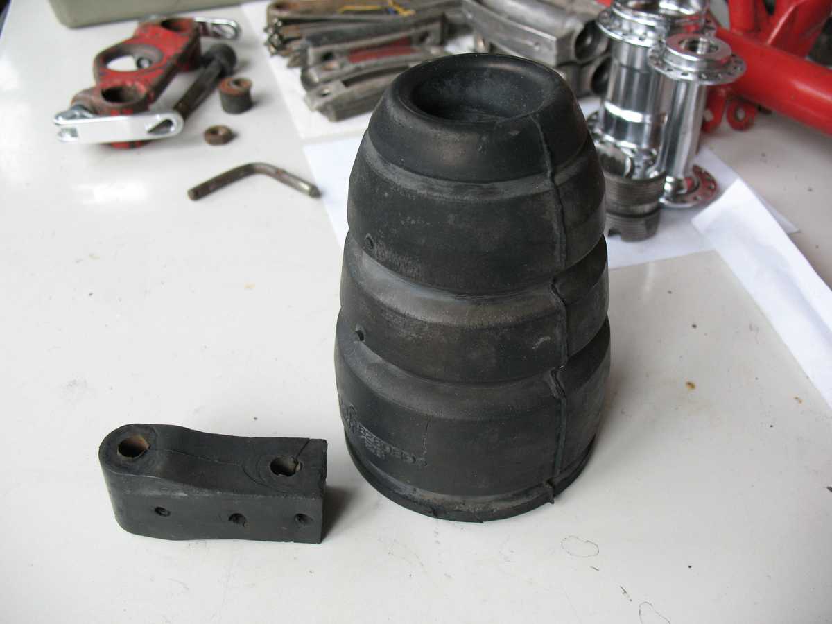 А это кандидат в амортизаторы. Ходил ходил, искал всякие резиновые изделия от подушек коляски на "Днепр", до сплошняковых полиуретановых колёс для тачек. А оно нашлось само. В буквальном смысле нашлось, на обочине. Три раза проезжал мимо, смотрел на него, думал пыльник шруса. На четвёртый таки остановился а оно сплошное.