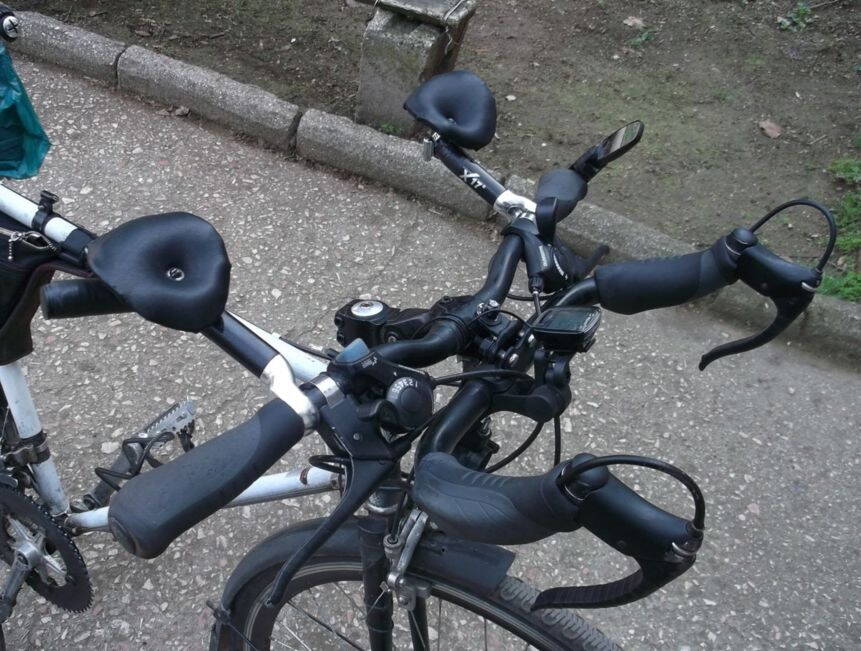 Собрал легкие подушки из пластиковой серой трубы.Вырезал поролон,пiд..жопник не стал искать,обтянул кожей.Проехал на нём <200км-полноценный аэробар.По прямой вообще с него не поднимаешься-удобство,скорость,ощущение пилотирования.Заметил важный момент-для удобства,подушки должны стоять чуть выше.