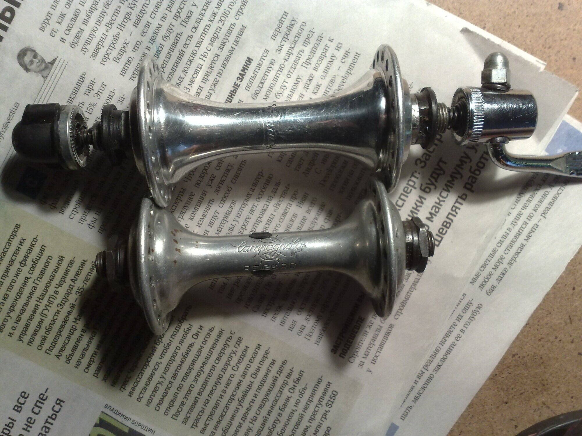 на одной надпись campagnolo record на 32 отверстия другая pama на 36