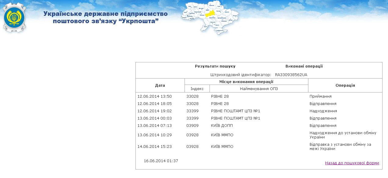 Вынос покинул територию Укрины за 2 дня и 1,5 час. Пошта України рулить!