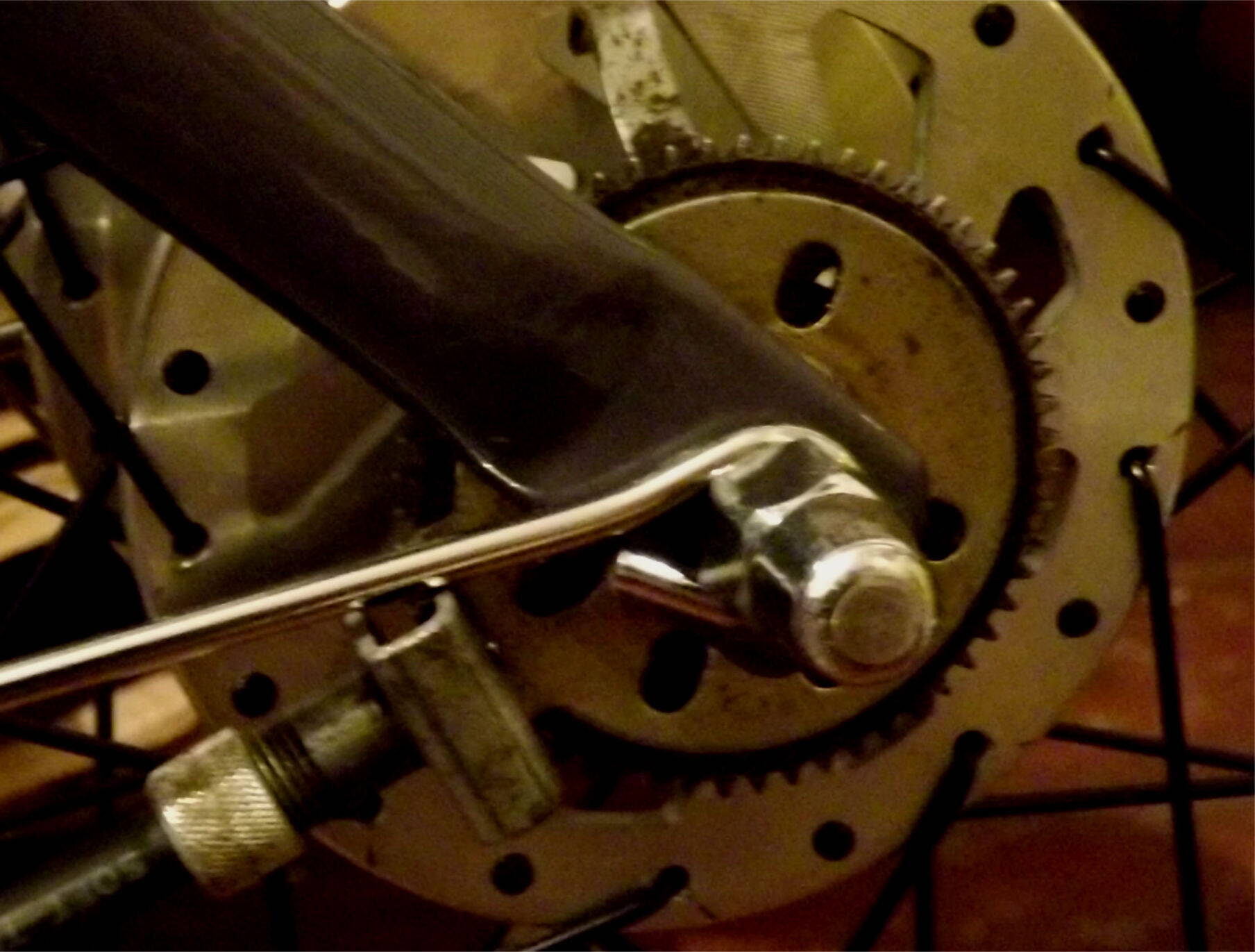 5) зацеп великої шнстерні за спиці (в моєму випадку) втулку.