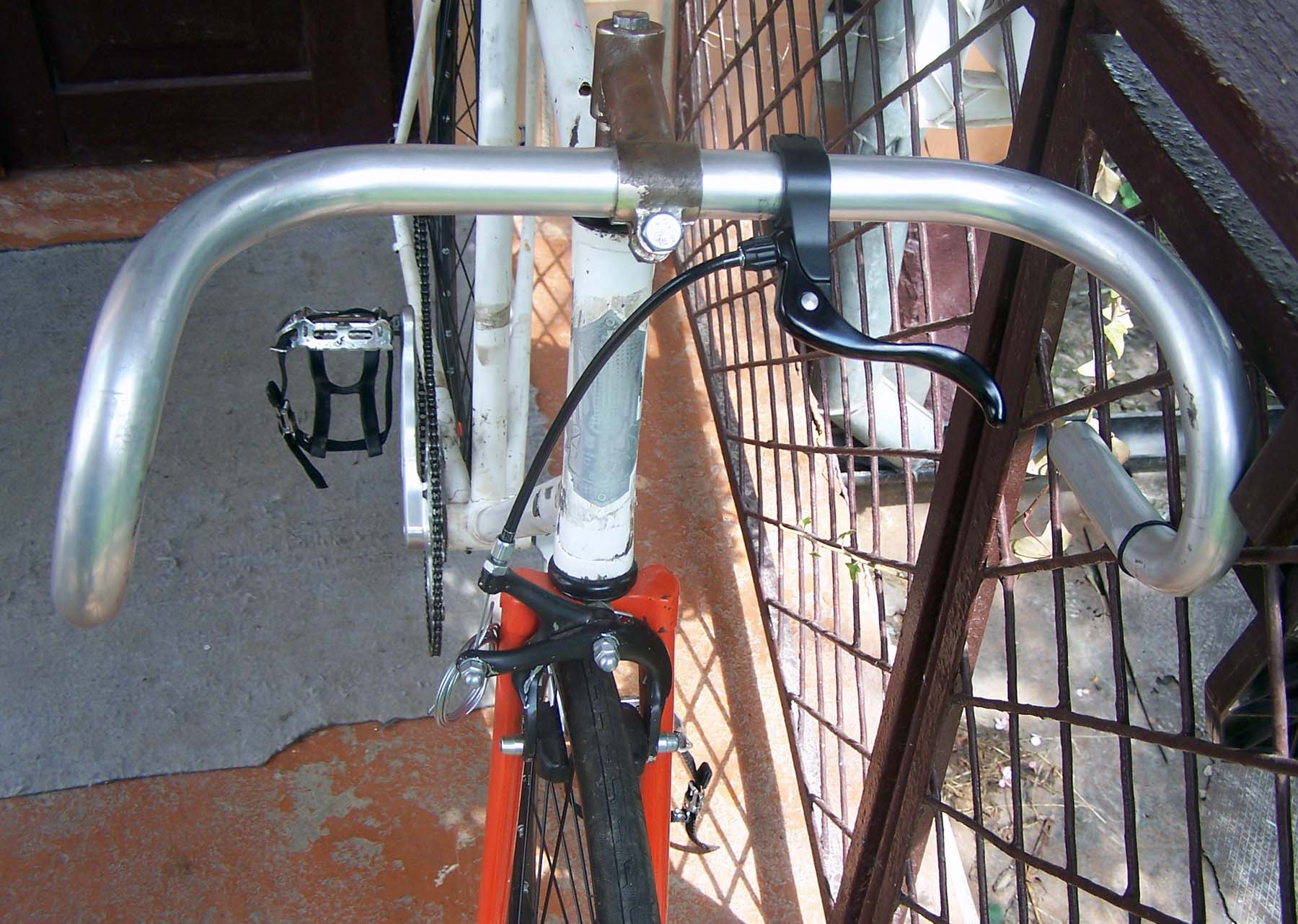 Та я ж говорил, на шоссере тоже за слоны больше всего держался, но сделал вывод, что это ради близости рук к тормозам, а не из-за удобства хвата. Наилучший контроль в городском муравейнике даёт хват за верхнюю горизонтальную трубу, и присобачив туда тормоз, я доволен и хватом и тормозом. Понятно, что это индивидуально, но...