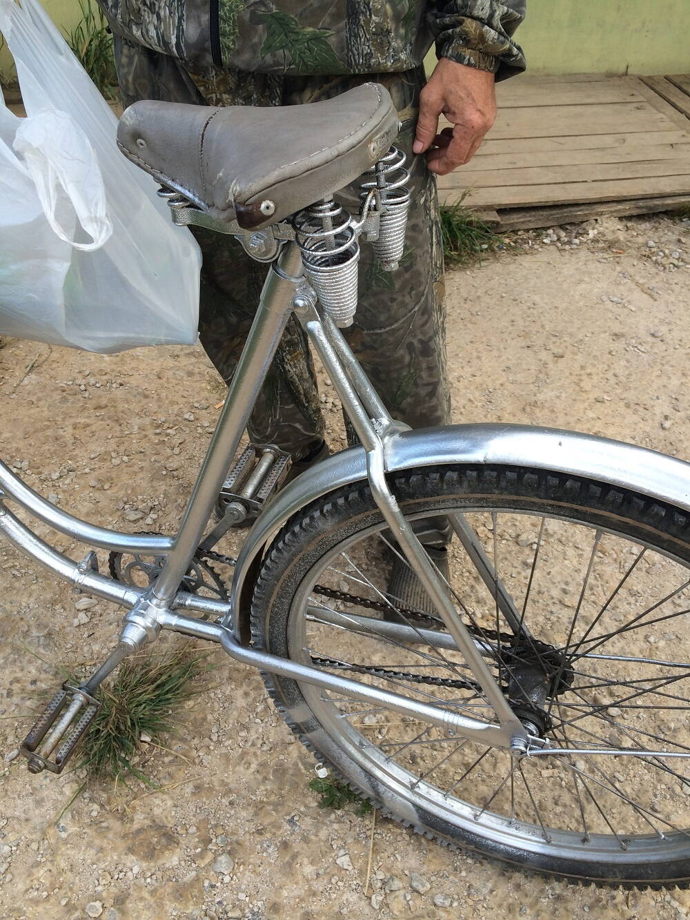 Свеже покрашен серебрянкой из баллончика, продать на отрез отказался мотивируя тем, что велосипед катит лучше новых. Мужика поставил на карандаш, он говорит, что у него еще штук 6 старых великов есть.