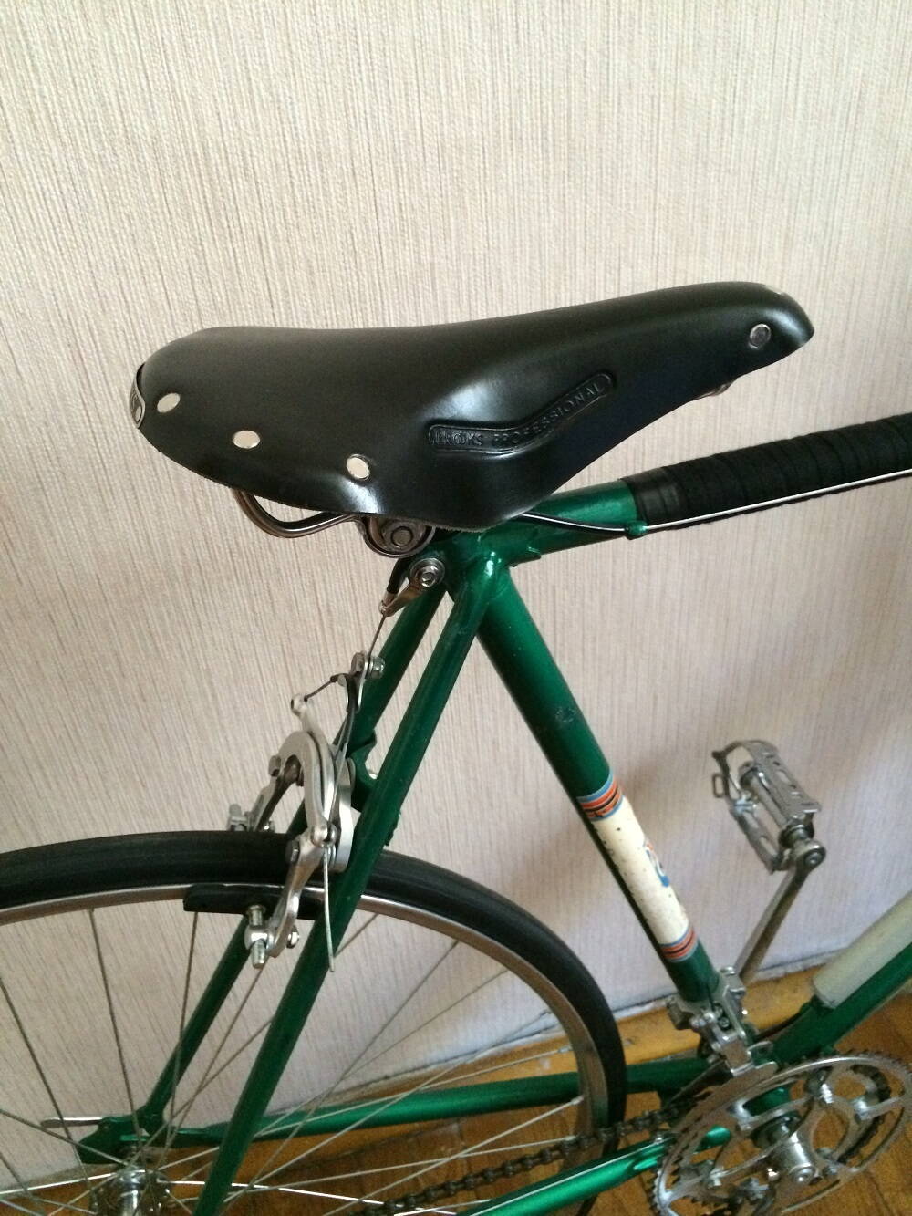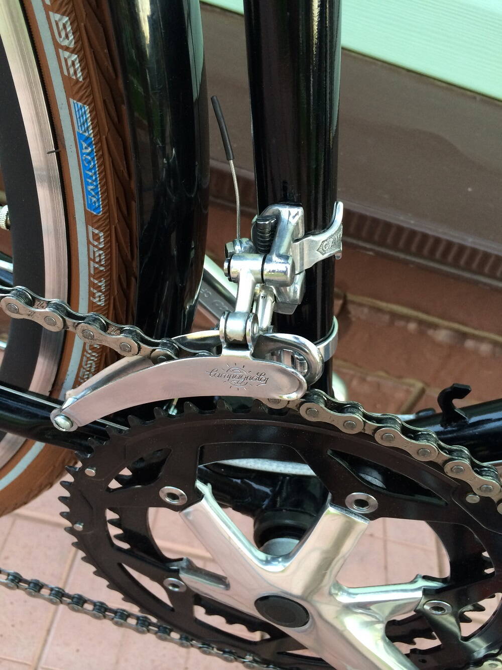 Передний переключатель поставили не оригинал, там есть упор для рубашки троса? Вообще у вас велосипед максимально близкий к оригиналу, может быть оставить седло и оригинальный переключатель, тем более, что они нормально работают. Колодки разные на переднем и заднем колесах, это специально?