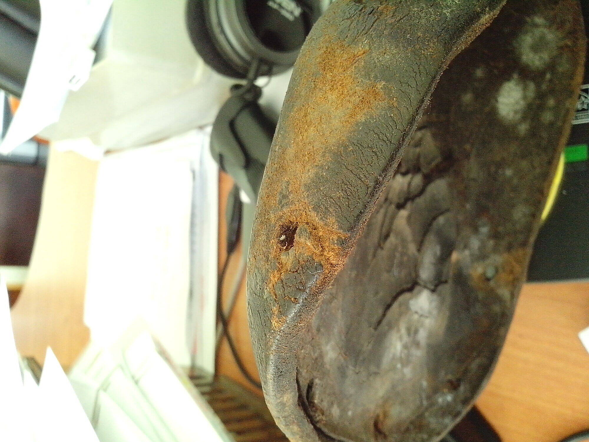 Седло отшкурено, отмочено, натянуто на колодку и сушится.