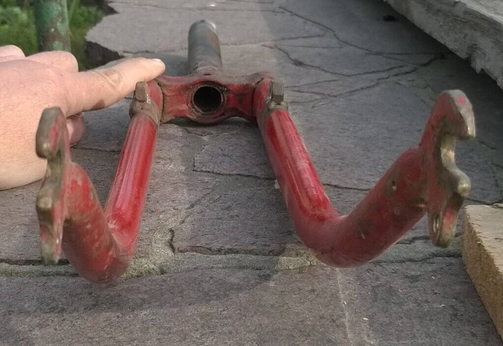 Розжився цікавою системою - але хром в дуже сумному стані. Зато перший раз побачив незвичайні металеві пильники на каретку. Фотки зараз викладу. Є питання - гляньте на вилки - як таке краще вирівняти? Маляр начебто знайшов ще кількох продаванів порошка, обіцяв пошукати в тих.