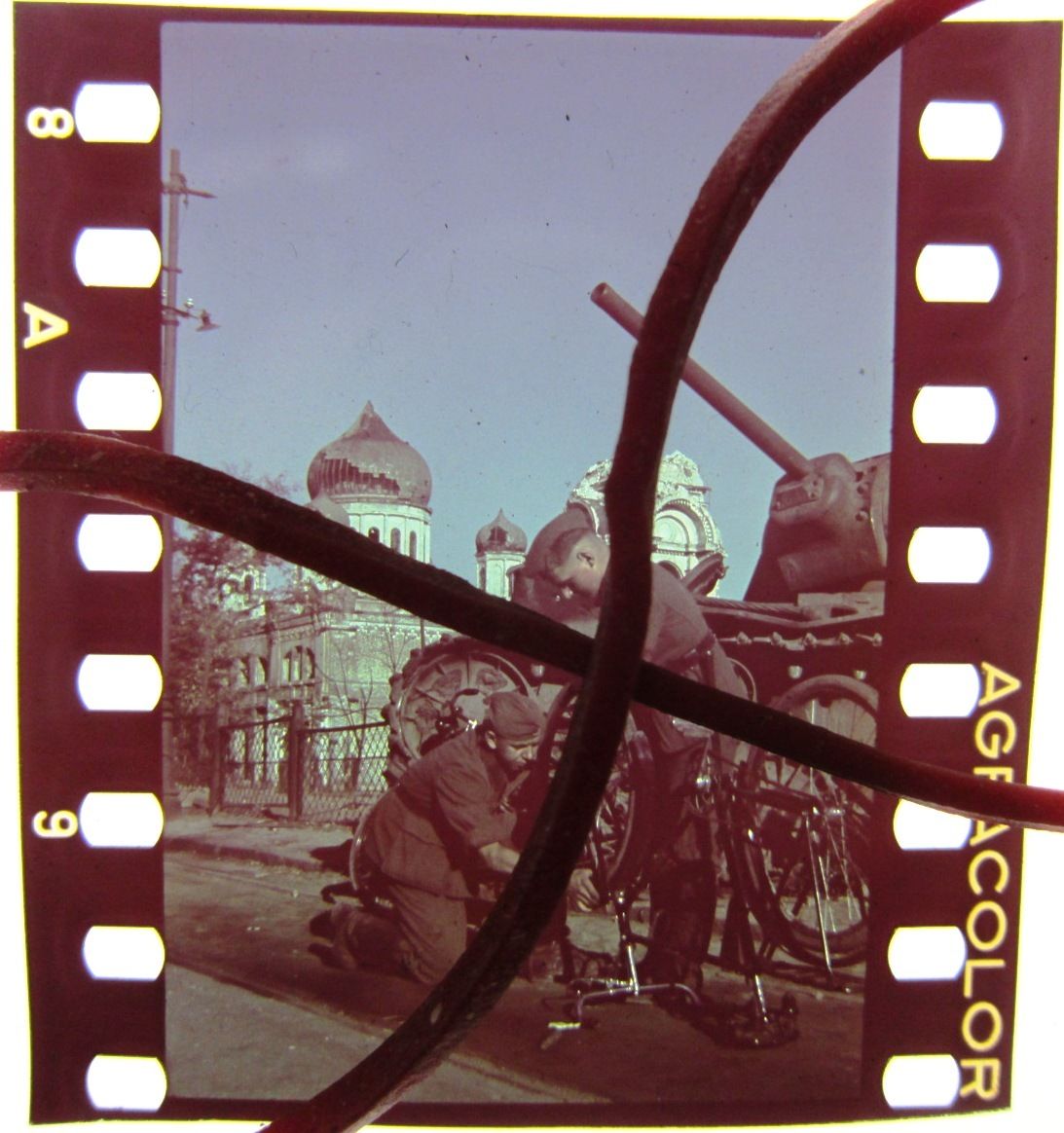 RAD bei Fahrradreparatur vor Panzer.JPG