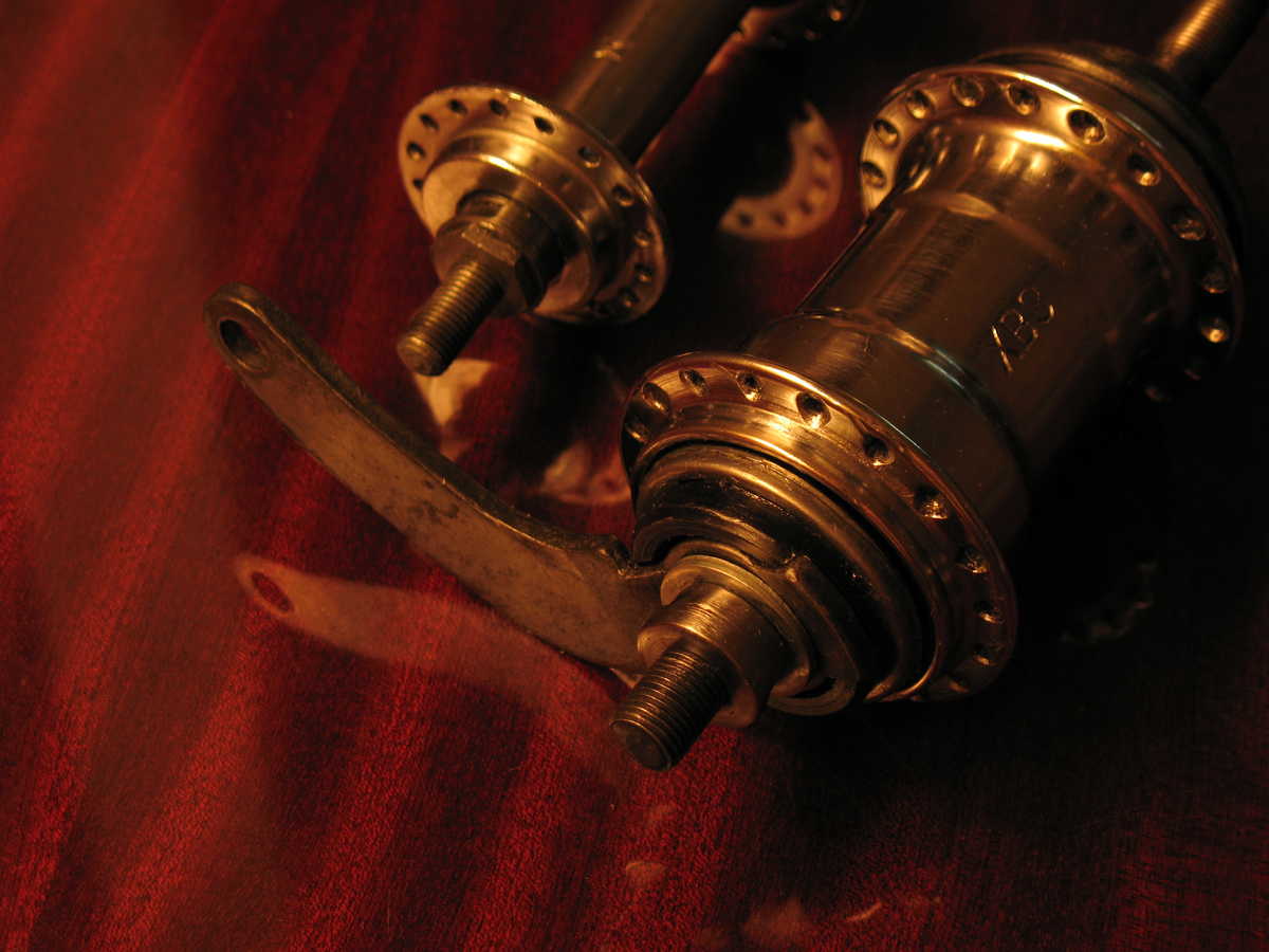 С торпедой был такой косяк. После предыдущей реанимации пару раз уползала ось колеса в дропауте. Но не справа, под звездой, а слева. Выяснилось только сейчас. Тормозной рычаг оказался подозрительно продавлен под контргайкой. На самой контргайке, естественно, срезалась резьба, и при затяжке от души гайки на оси тормозной рычаг вдавливался в полость в тормозном конусе. Вот затяжка оси и ослабевала.