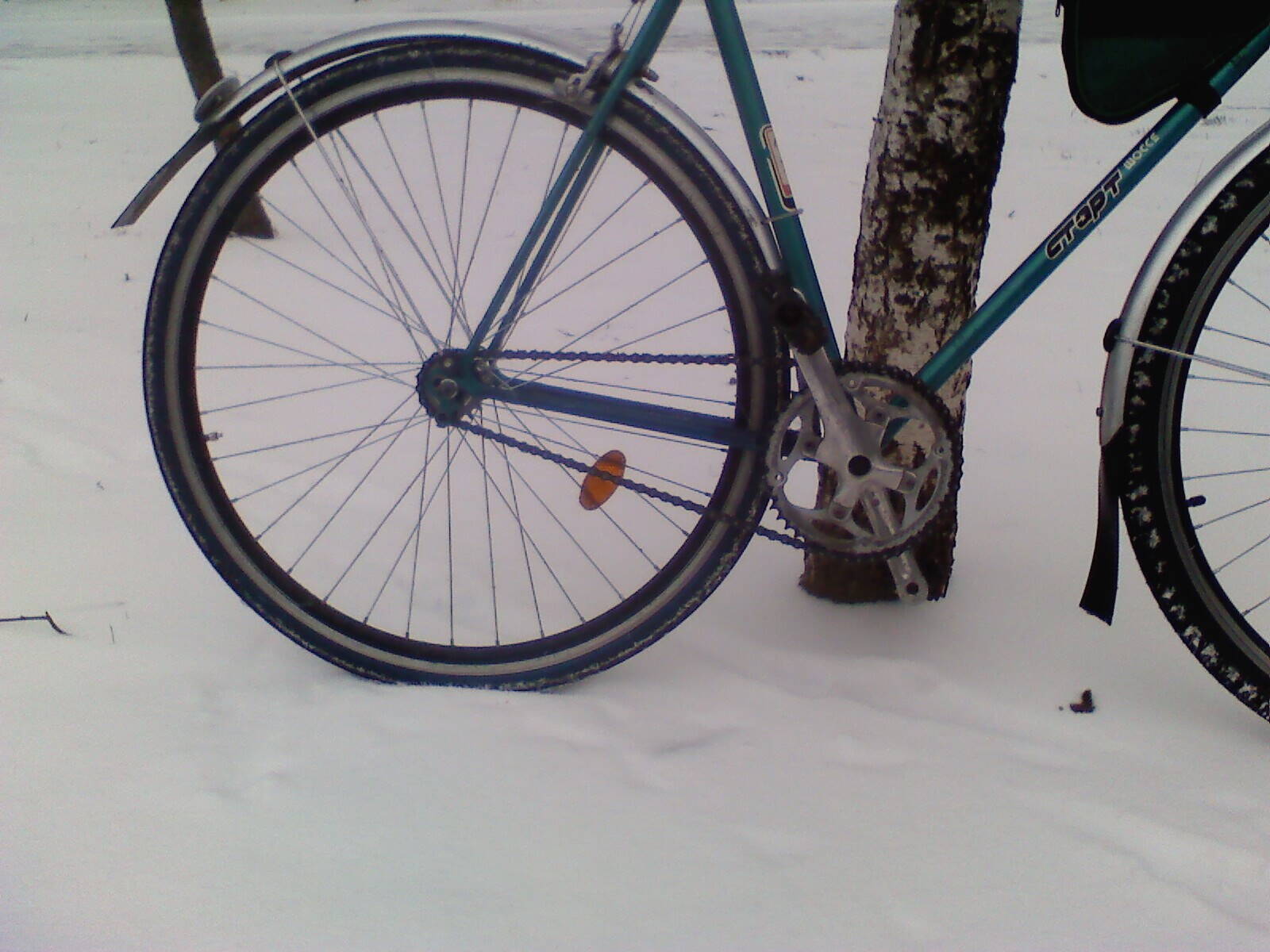 Снова наступила зима, я переобул старт-шоссе в толстую кенду, но при натяжении цепи зазор оставался очень мал, забивался грязюкой сразу. и заднее крыло нормально не ставилось- каретка и тормоз всегда грязный. Решил поменять раму.