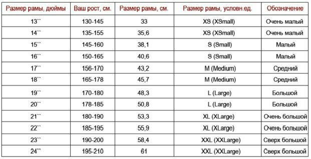 Всяких таблиц полный тырнет. Каждой верить - денег не хватит. Я уже где-то рассказывал о трёх знакомых барышнях одинакового роста, одной мой "Трофейный" как раз, другая за педалями носочки тянет, третья откровенно не достаёт до педалей. При самом низком положении сидухи. По какой таблице им раму выбирать?