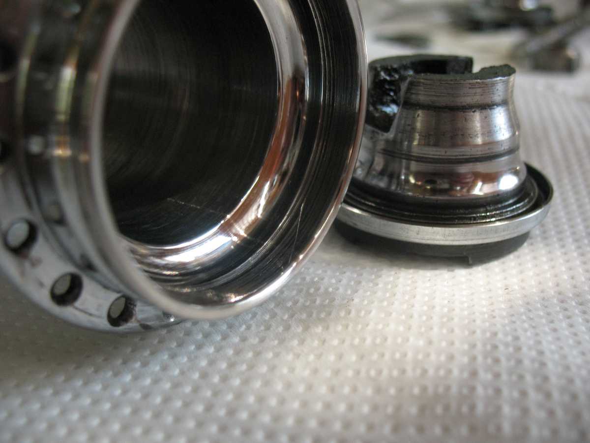 Чешуи в смазке не замечено, малый и правый конуса впорядке, на левом конусе имеются мелкие коцки. Но похоже я их просто в прошлый раз недошлифовал, так как они в разных местах дорожки подшипников и в основном не на следе качения шариков. Прошлифую его заново. И корпус втулки теперь тоже.