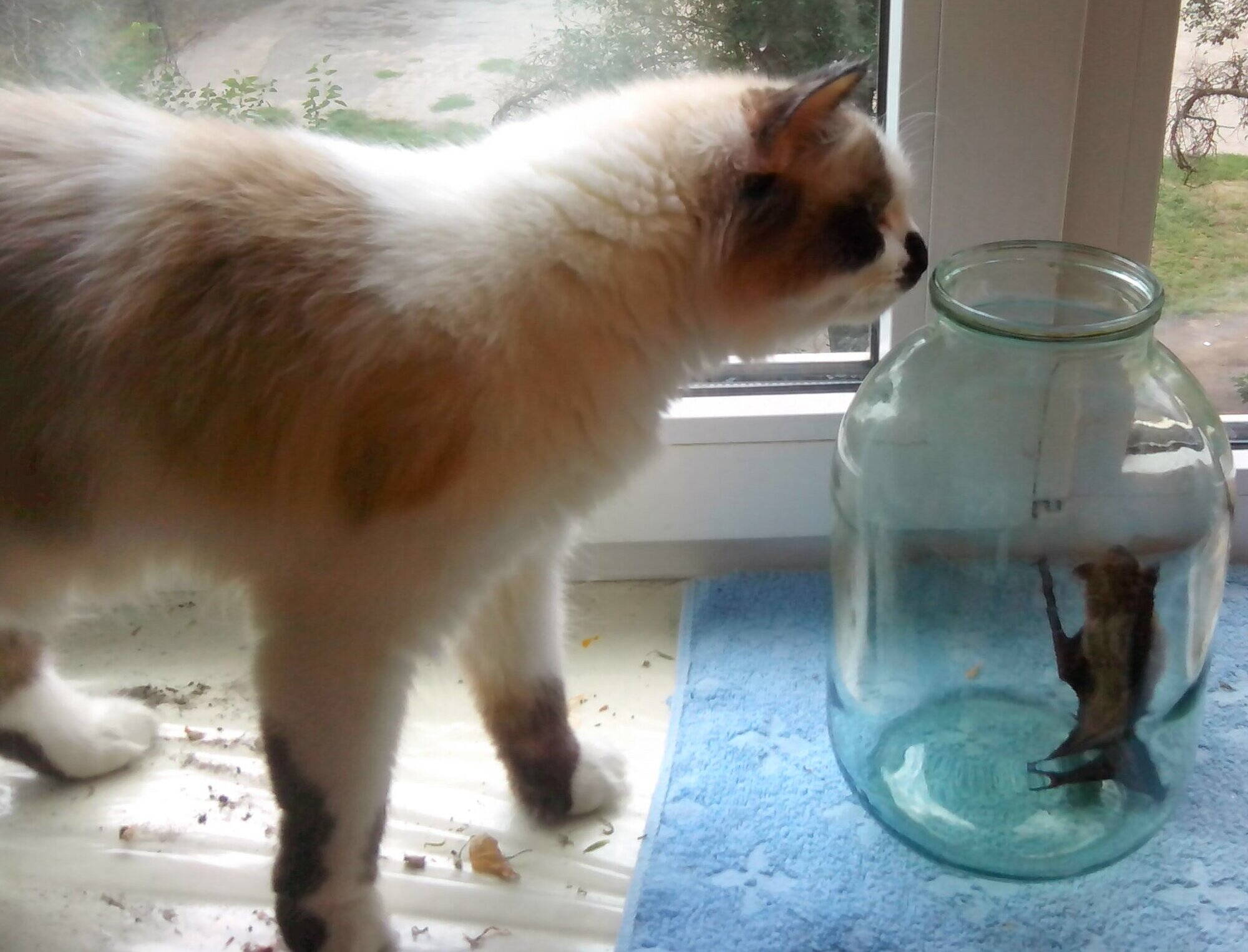 П.С. С летучей мышью, правда, кошке справиться не удалось, пришлось поймать самому.