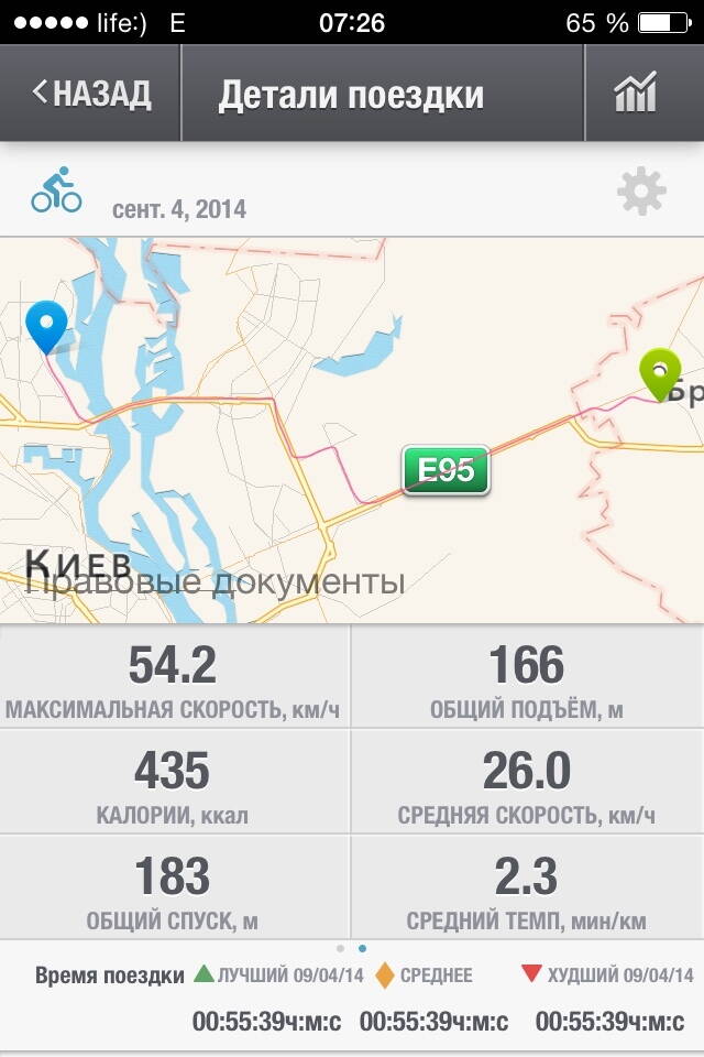 По поводу времени на проезд : живу в броварах , работаю на оболони (время от времени ))))) . Общественным транспортом 1 час 20 мин. На вело 55 мин со всеми светофорами