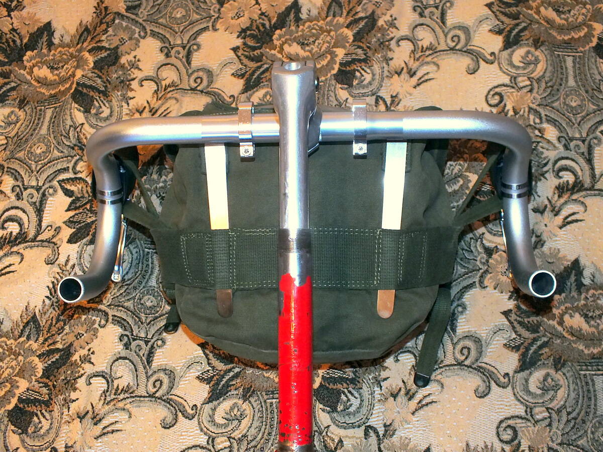 Можно было еще, проще, сзади есть ремешки, но тогда сумка слишком высоко сидит.