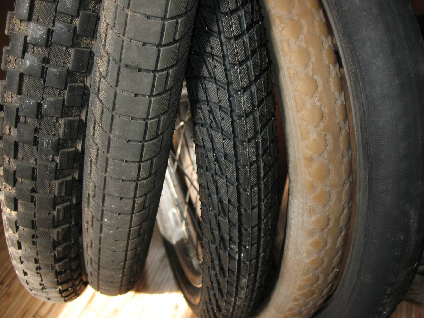 Они не такие зубастые как кажутся на фото. Для сравнения слева направо Maxxis Holy Roller, Kenda NPJ (почти такая же как и контакт, с пробегом около 6 тыс), Kontact и пара тех что были на велосипеде