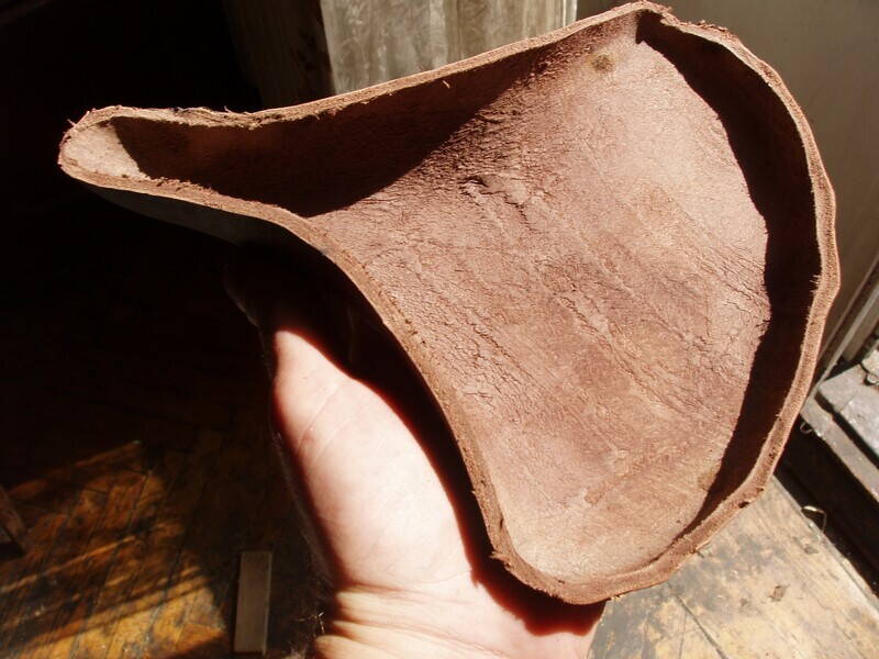 Потом шкура была вырезана сапожным ножом прямо на колодке и снята. При постукивании слышался почти "фанерный" звук!! Поверхность внутри оказалась бархатно-гладкой. Брукс бруксом