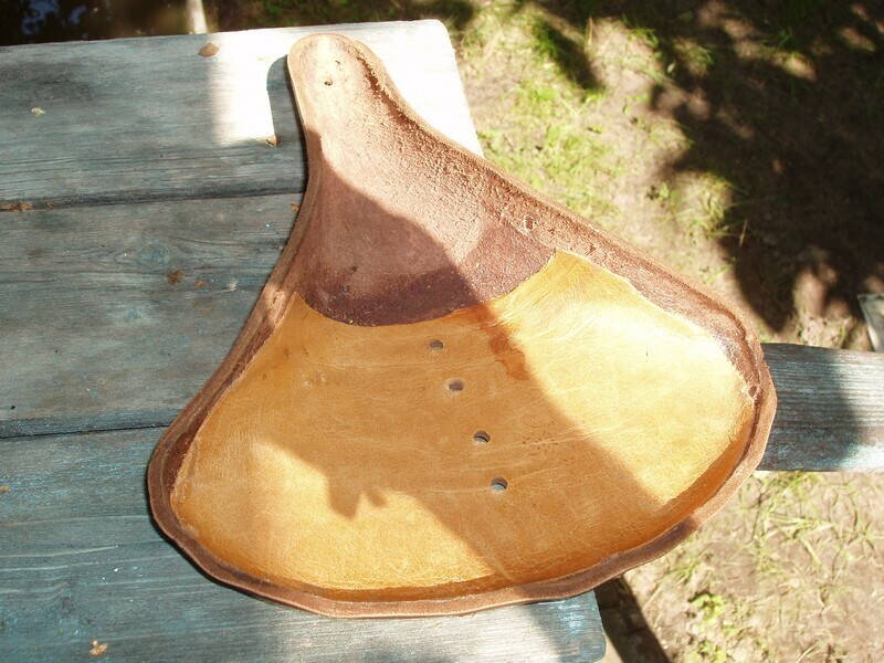 ), что спортивное седло таким и должно быть. Более того, пишут, что кожа растительного дубления (я понял, что у меня именно такая) не должна терпеть температуру больше 80 град. - дубильные вещества уходят - а я её кипятил... Нужно пробовать какую-то другую технологию.