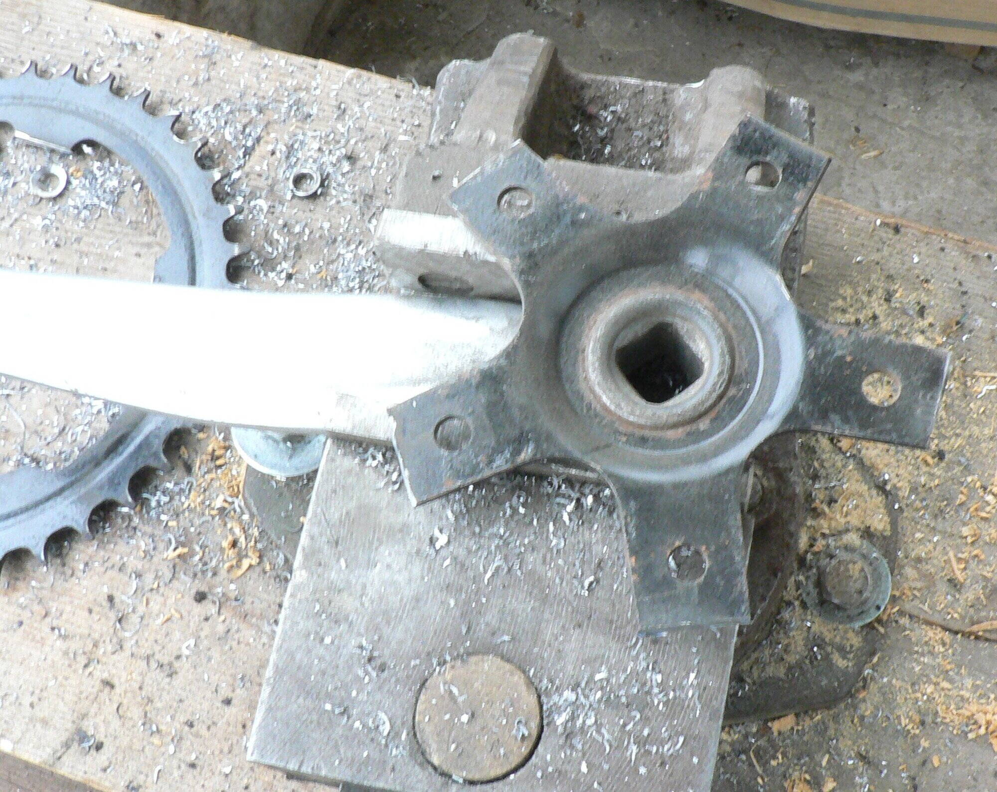 Дальше потребовалось удалить старую звезду, оставив на шатуне только пять креплений.