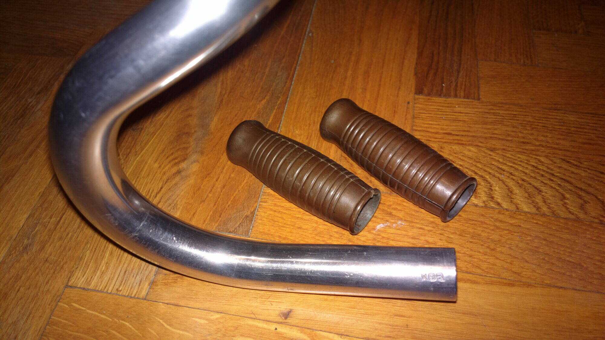 Комментарий к файлу: Вид снизу. Как видно, отполировалось хорошо. В зеркало выводить не хочу, тк велосипед 50-60 годов, и он должен быть слегка топорным, слишком аккуратно полированный руль будет, как мне кажется, не в тему. Поэтому работал руками, без войлочного круга. Получилось хорошо, некоторые коцки остались, но пусть будут для антуражности. Тем более, после того как я одену вынос и тормозные ручки, то пройдусь повторно, но без фанатизма.