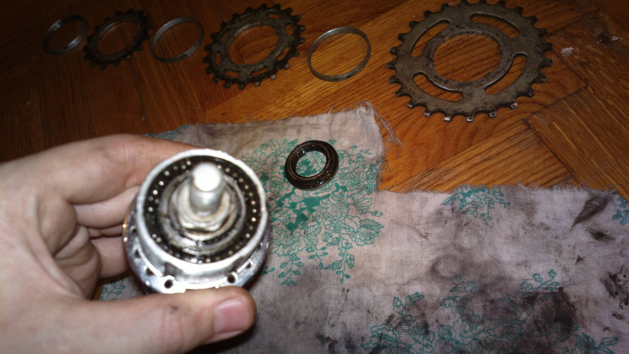 Уезжал на выходные, поэтому смог позаниматься велосипедом только сегодня вечером. Перебрал втулки от В-33 и В-542.