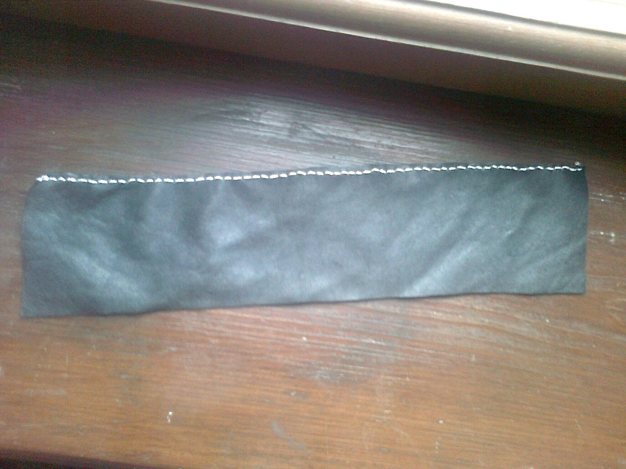 Заготовочка тренировочная - шов ессно кривоват и шилось ниткой просто "покрепче". Кожа из которой шилась куртка, как по мне, довольно нежная и тонкая, но всё равно прошивал довольно долго, около часа точно. Кожа довольна эластичная, поэтому решил сперва примерить на руль (а вел на другой квартире) потом второй шов прошивать.