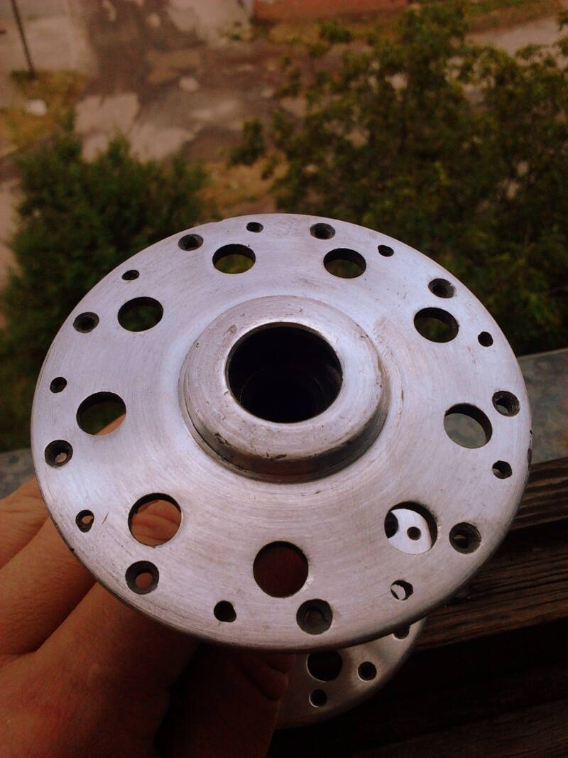 Фланцы получились, как только с токарного станка. Отполировал обода и втулки, отнес на наборку. Решил не париться с измерением длинны спиц, а просто отдал в магазин - пусть сами думают какие ставить :smile: .