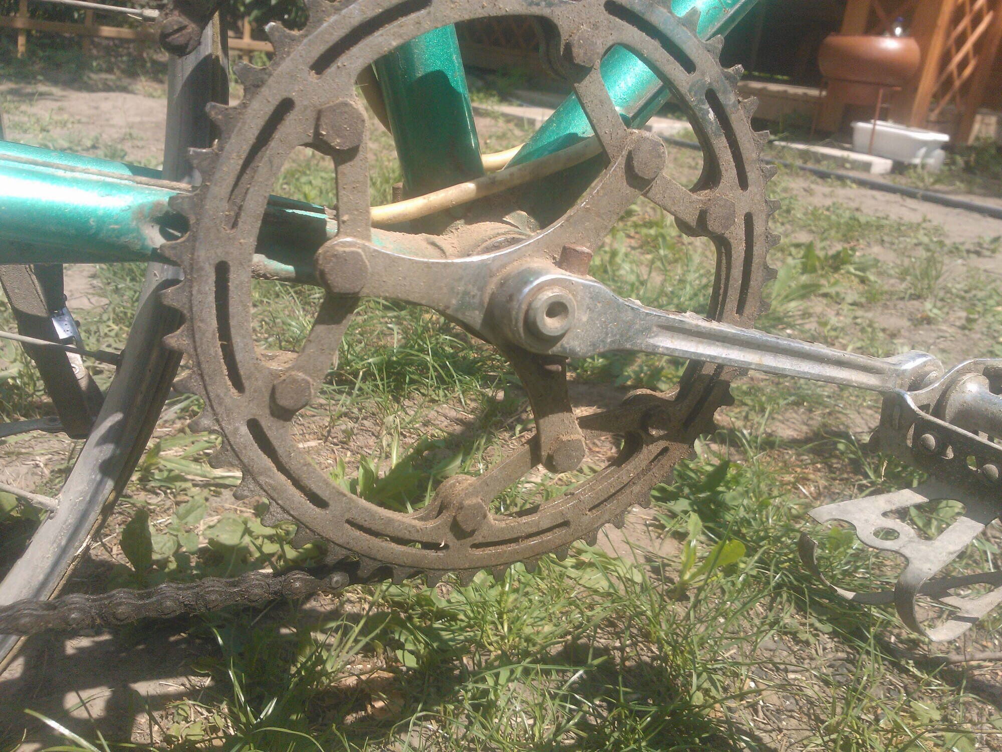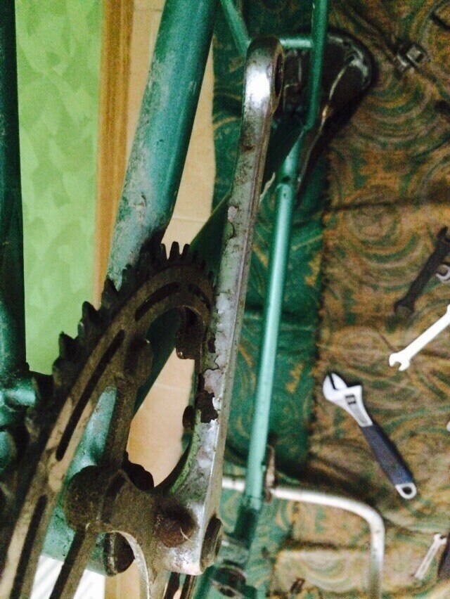 Из неприятного, что досталось в придачу с велом, это недостающий болт натяжителя седла, ржавчина на выносе, и местами ржавчина на раме, слегка облез хром на шатунах, лопнувший туклипс, шатается правая педалька.