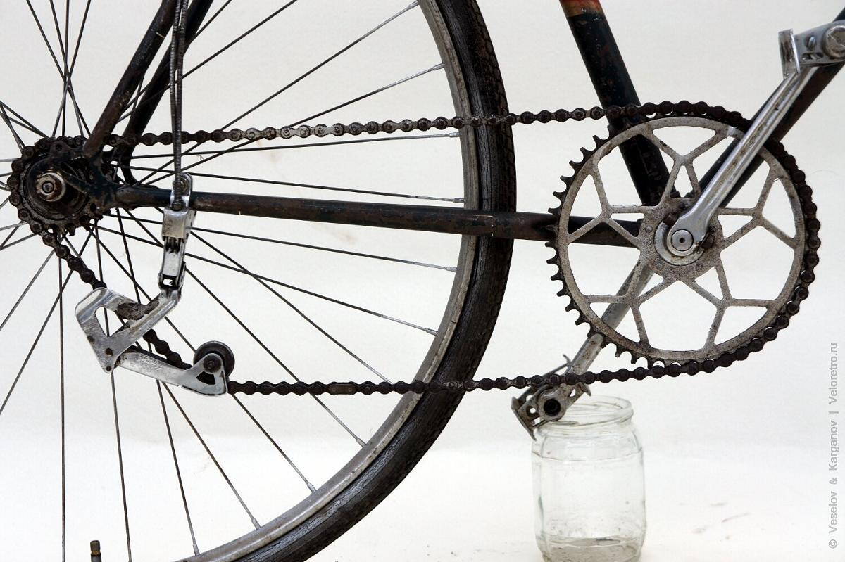 Мой турист 61 г.в. Он изначально был только с тремя задними звездами. Заднего переклюка не было, а вот спереди изначально не предусматривался передний, что сильно осложнило его так сказать модернизацию. Пришлось делать там бонку и еще парочку на на верхней трубы рамы.