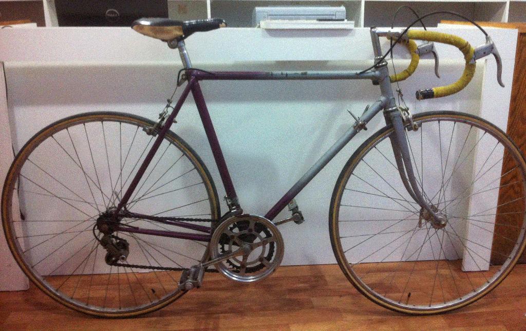 Это мой первый шоссейный велосипед! Появился у мня он много лет назад, немного поездил, пока трубки были. Затем за время моего отъезда был измучан и запущен до неузнаваемости школотой, недавно откопал его на чердаке!