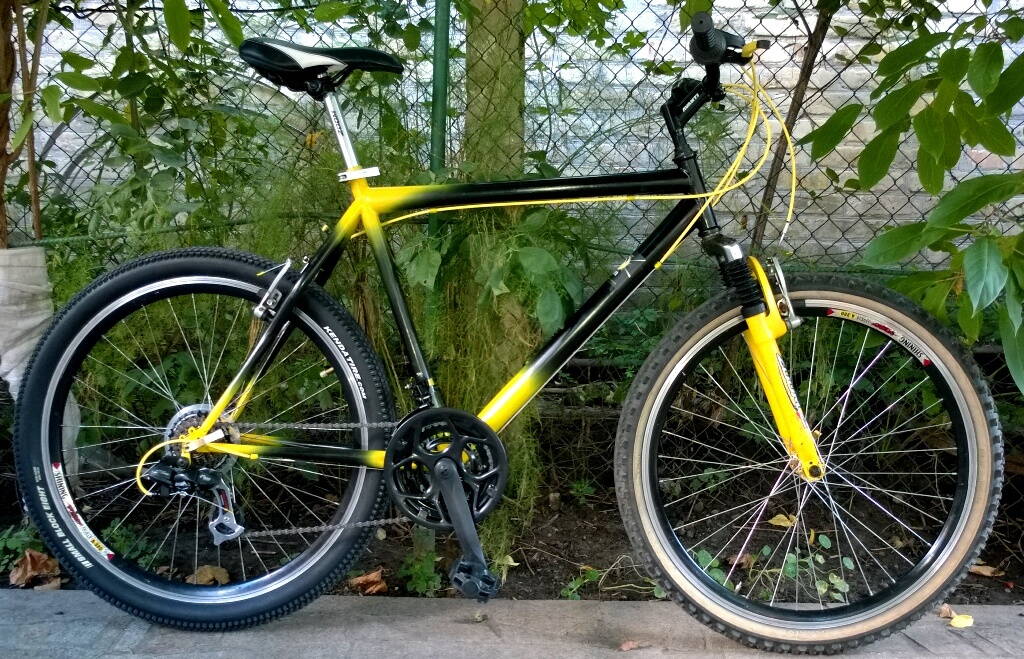 Та колись одному товаришу з металобрухту Ардіса відновив. Ну там був реальний жах. Я перший раз бачив квадратні шаріки в каретці та їх відсутність в педалях :lol: То сподобалось, як я його пофарбував. Вилка не рахується - з нею нічого не робив. Якось так :