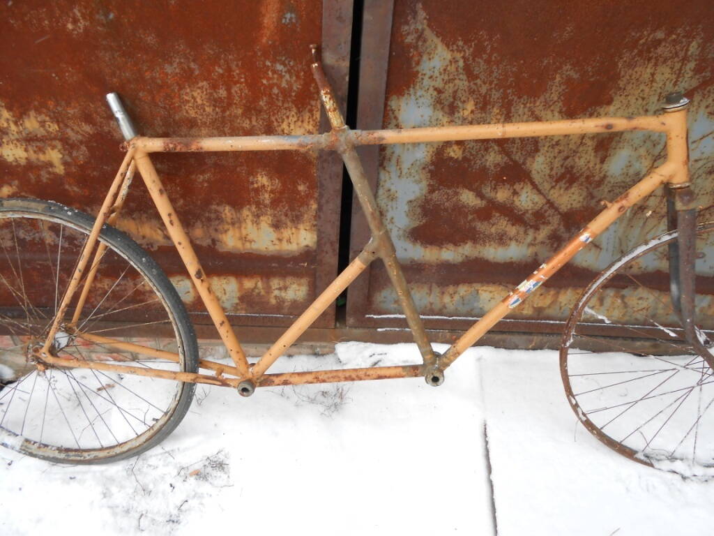 Однозначно самовар, как Женя заметил - "Турист-Шоссе". Я подобную раму из Украин в детстве на свалке нашёл, очень обрадовался, собрал велосипед, из чего было но проехать ни метра не смог. Гнулась от нажима на педали, моментально слетала цепь. Видимо, на заводских тандемах некоторые трубы более толстостенны, да и конструкция грамотна.