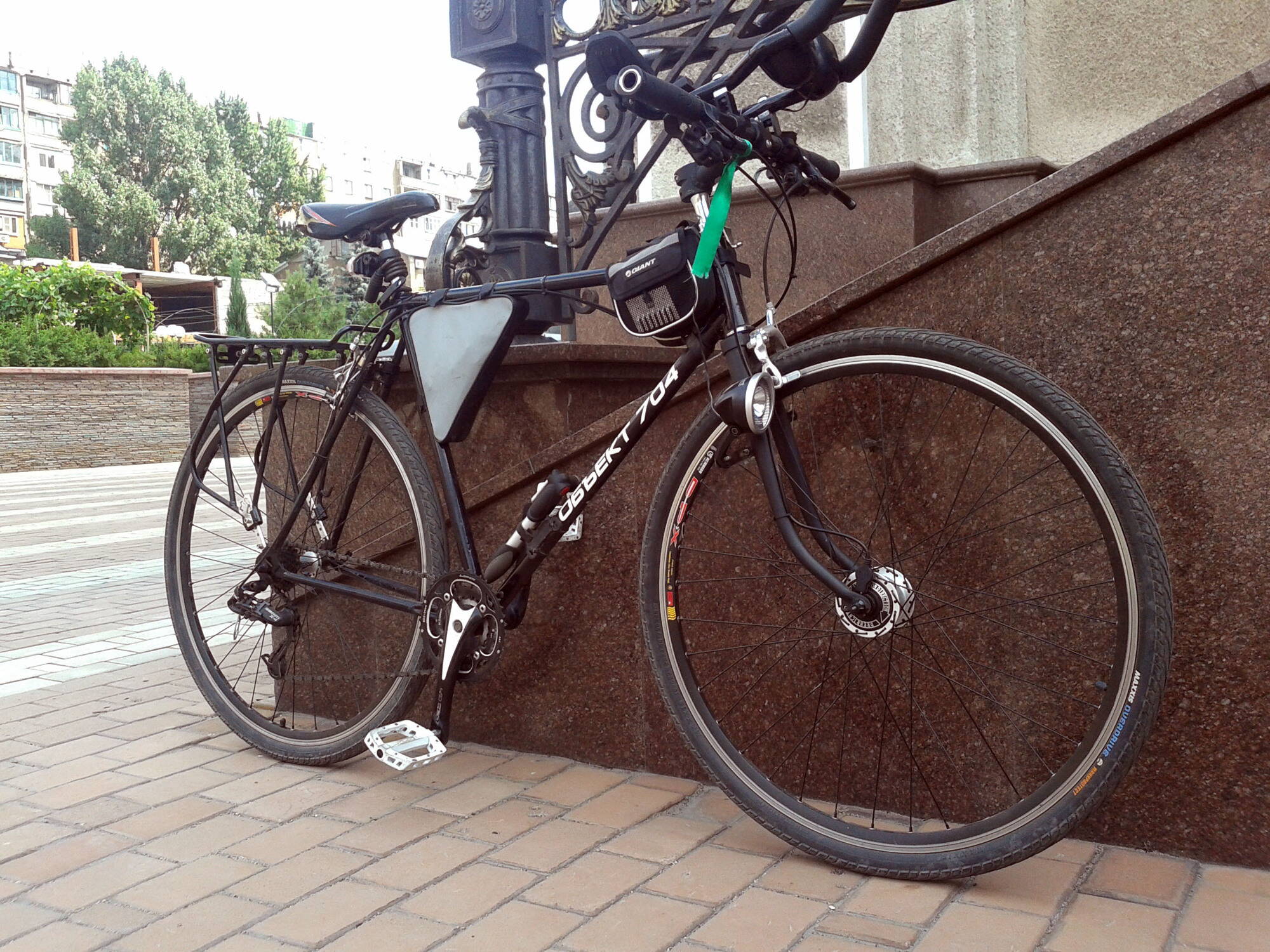 Еще хотел бы обмолвиться об электричестве.Динамо-втулка-вещь!!!Да,накат падает,да,ехать тяжелее немного.Зато-на борту есть свет.Постоянно!Плюс еще с помощь друга сварганили схемку из букета полевых тарнзисторов и я мог заряжать телефон.Схемка хорошей,но малость сыроватой-заряжать телефон можно было только при отключенных фаре и колонках(да,кстати,еще колонки были на борту)))