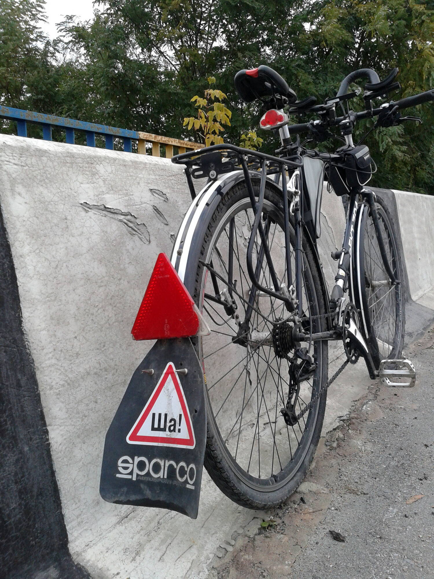 Теперь минусы-при боевой загрузке вел колбасит,если отпустить или приотпустить руль.Может это из-за "мягкости" рамы,"турист" все-таки,а может от высокого положения багажника,хотя его максимально занижал.Но я не особо страдал от этого всего,так,надо же все впечатления написать :smile: