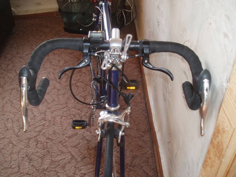 С тех пор поменяна рама на Спецзаказ, приделана хитрая конструкция переклюков и сменен руль на venzo Приделаны тормозные дублирующие ручки на горизонтальный хват. Сменена система на Truvative Isoflow road. Сменена цепь. Каретка спецзаказовская с аутентичной осью и чашками.