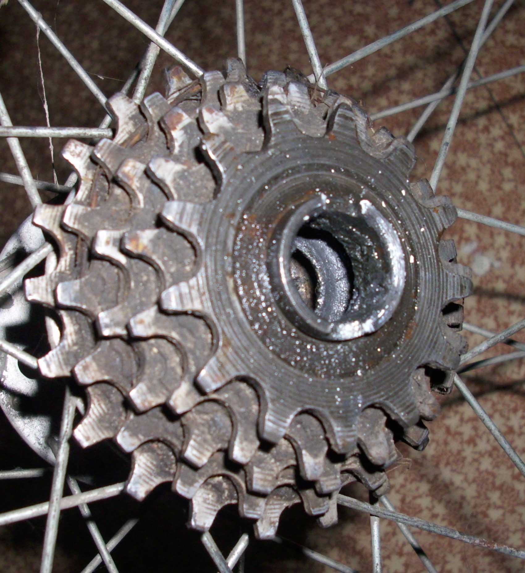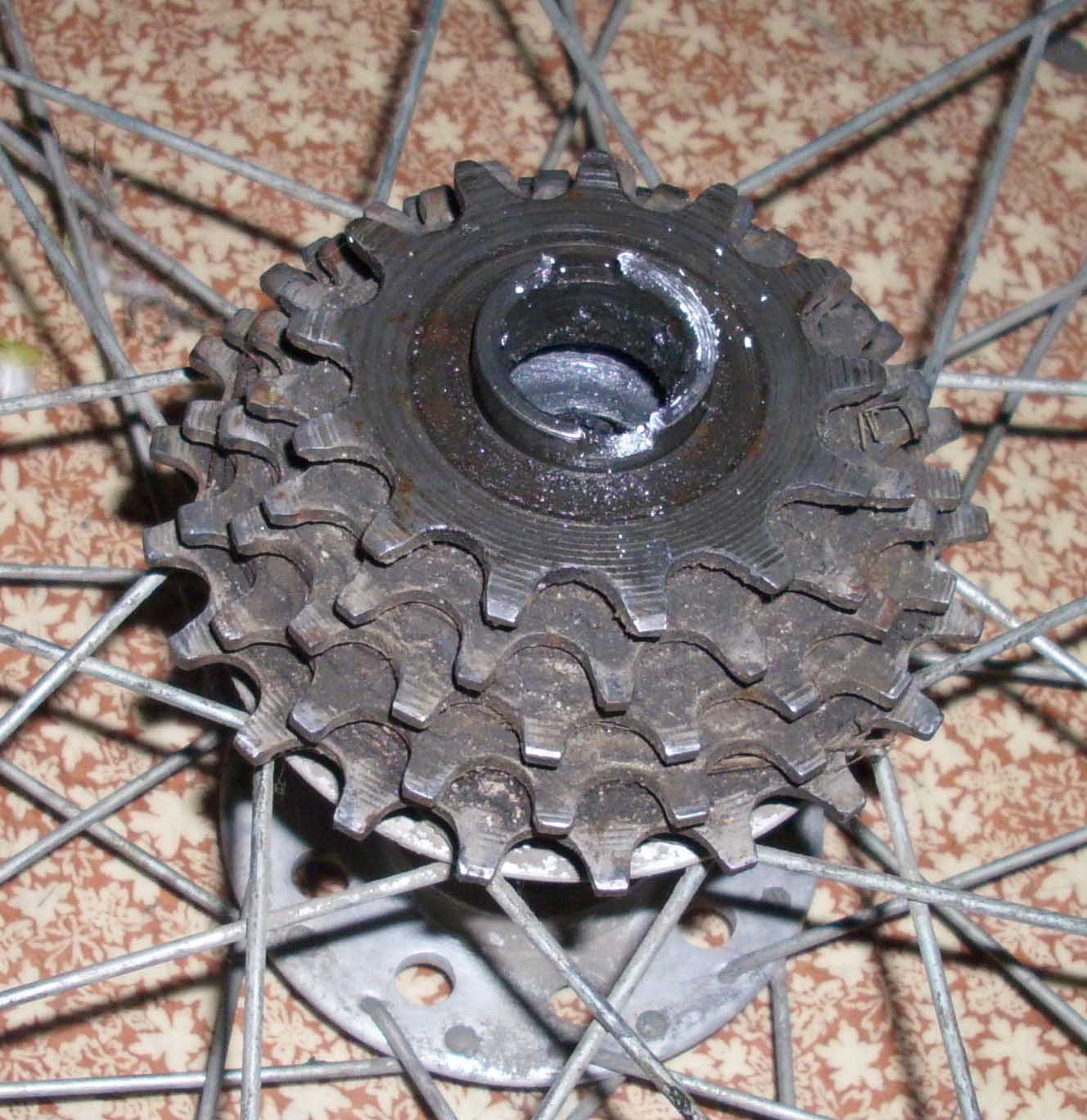 Всем привет. Достался мне СШ 1975 года. Особо крокодилить не хочу (раритет таки), но обода точно нужно менять под клинчерную покрышку. Втулки с высоким фланцем. Как снять трещетку? Она сильно отличается от тех, что я видел на более поздних СШ, и имеет место быть "плаванье" на оси всего блока звездочек.