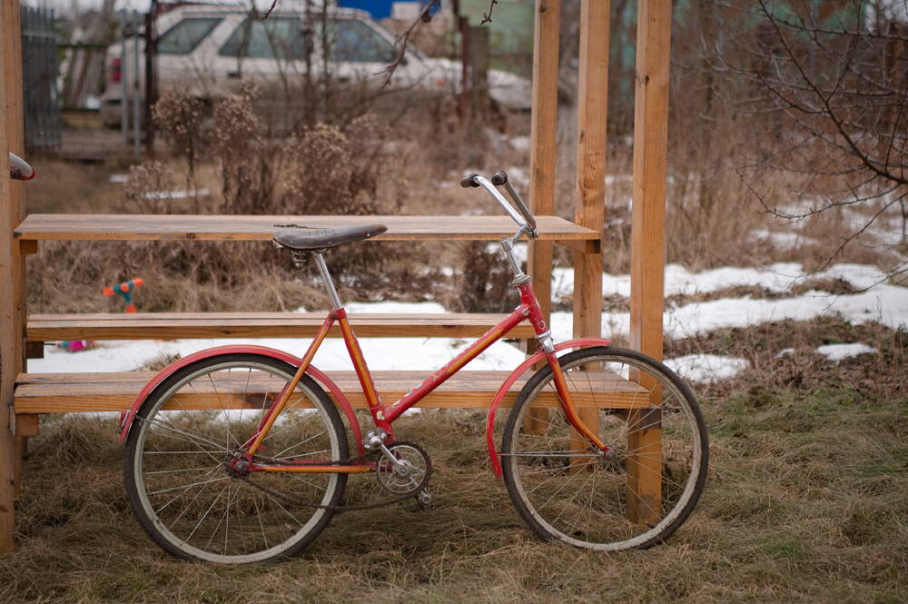 Еще на балансе дачного велопарка есть такой вот "Школьник". Нашли его в объявлениях два года назад всего за 500 рублей. На Школьнике катаются моя мама и супруга. Естественно по отдельности :D Скоро сын подрастет, и ему в самый раз будет.