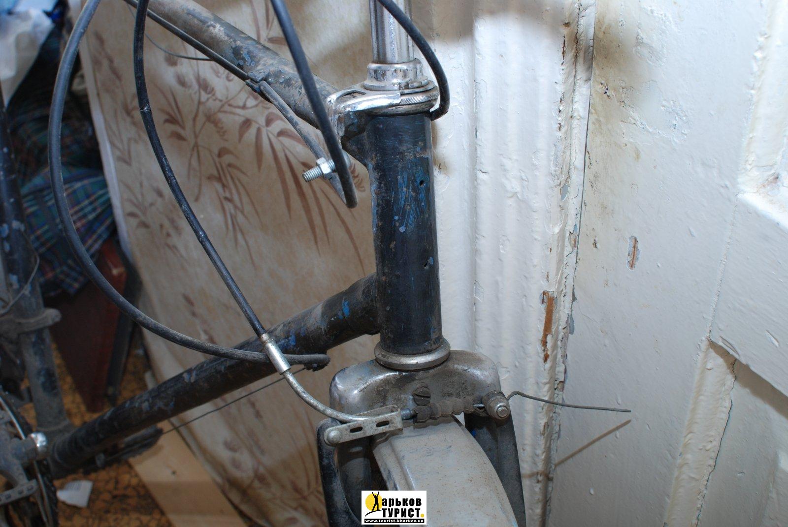 Рулевой стакан штампованый, а не труба с фиттингами для крепления остальной рамы. Причём нет даже декоративной подштамповки, изображающей те фиттинги, как делали на ХВЗ.. Не 90-е годы - дырки от заклёпок эмблемы есть, а они только на Минсках-Аистах к тому времени сохранились.