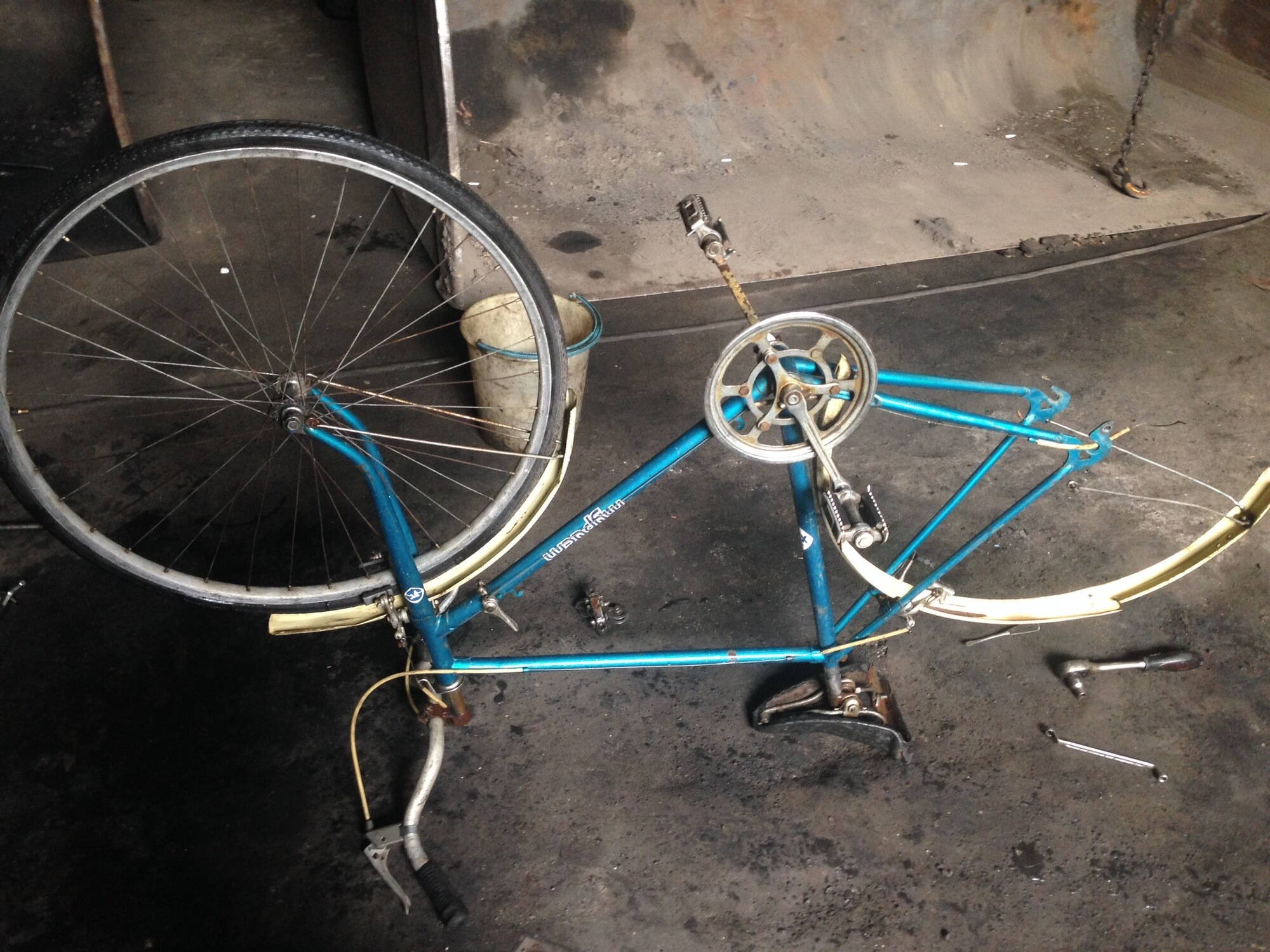 Колеса тоже в сборе, но за столько лет им уже хана) с них можно поживиться втулками и пачкой звездочек - эти элементы тоже в порядке.