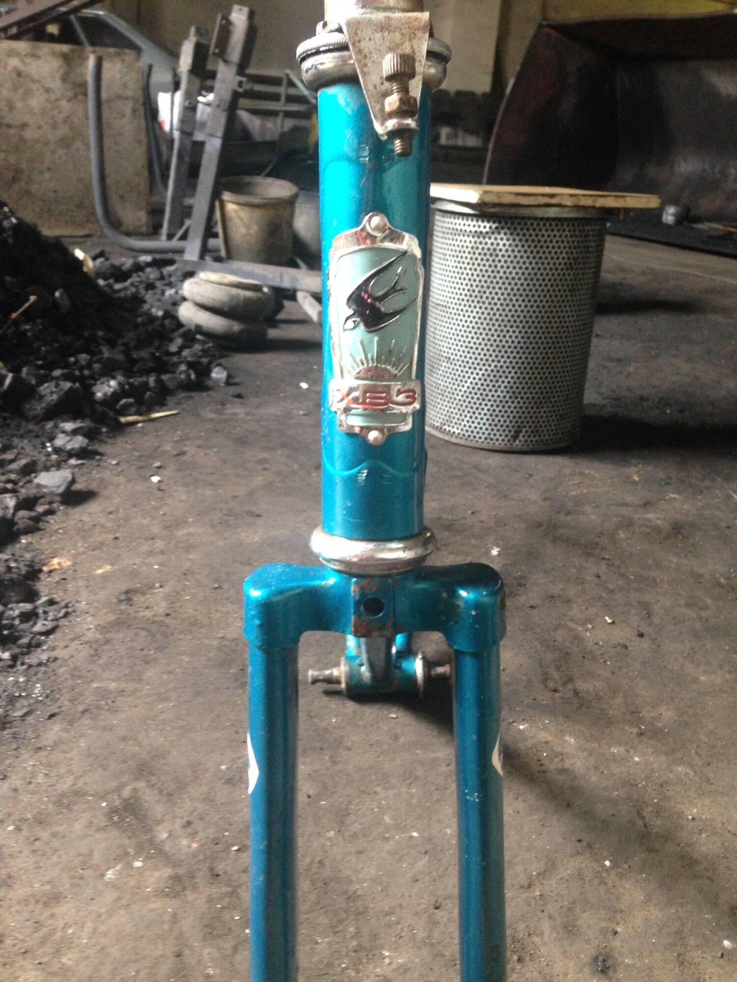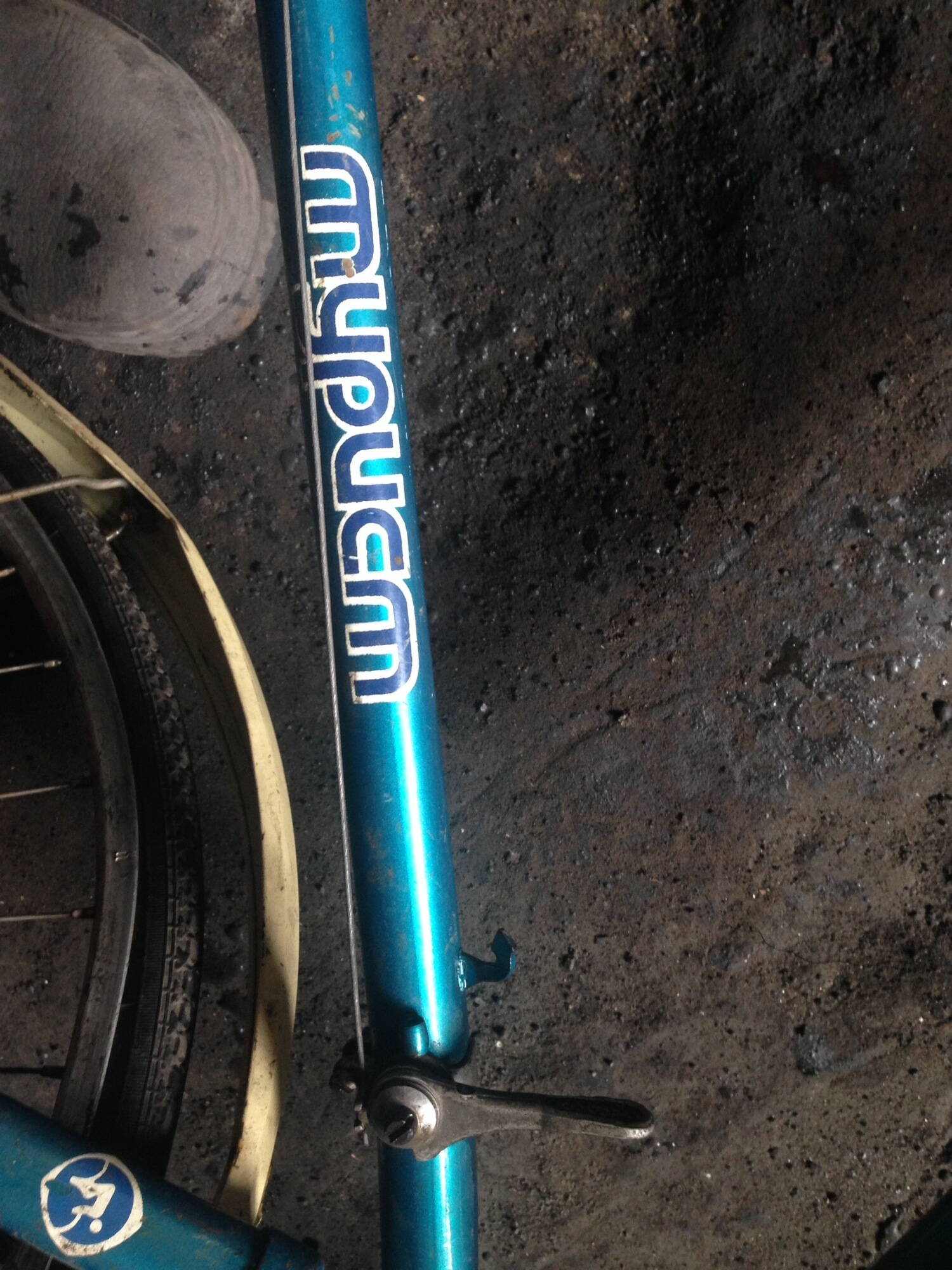 Велосипед "Турист" 84 г.в., цвет зелено-синий, все наклейки целые, рама немного загнута в местах крепления манетки и над ней :( , все бонки и крепежи для насоса на месте. Даже шильдик ХВЗ не весь проржавел :D
