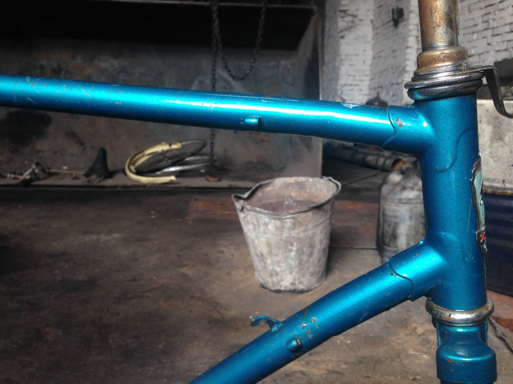Всем привет! Давным давно захотелось мне вспомнить те ощущения из детства, когда ты катишь по дороге и ветер бьет тебе в лицо... Вобщем велосипед захотелось мне :) Мою Каму украли из стайки какие-то негодяи очень много лет назад. А этой весной у деда в гараже, откуда не возьмись, я нахожу старенький велосипед "Турист", 84 г.в. Что за чудо, подумал я, но что с ним делать?? Из последних воспоминаний о ремонте велосипеда мне приходит в голову ремонт столбиков на старом дедовском "Урале", которого сейчас и след простыл. Но ничего, живем во время высоких технологий, Яндекс выдает мне ссылку на ваш замечательный форум :) Три дня штрудирования материала, взахлеб зачитываясь отчетами о восстановлении страшненьких ржавых рам, привели к тому, что в голове сейчас полная каша из прочитанного материала :) Поэтому начнем по порядку.