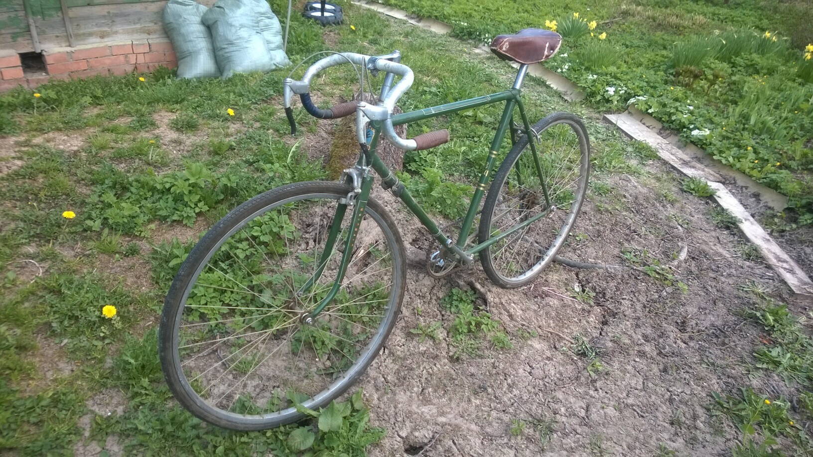Всем доброго времени суток! Сразу к делу: вспомнил, что на даче был отцовский велосипед, нашел его, достал, оказалось - Спутник В-34 (самое позднее - 1964). Аппарат в очень хорошем состоянии, но недостаёт левой педали:) Также хочу поменять резину, все прочистить, промыть, отполировать и т.д. и т.п., то есть полное восстановление в идеальное состояние, но с незначительным количеством неродных деталей. На просторах форума не нашел достаточно информации про именно эту модель. Не судите строго, может, чего и не увидел. Прошу у вас подсказок, полезных ссылок и чего угодно еще, что может мне пригодиться. Прикрепляю первую фотографию своего Спутника.
