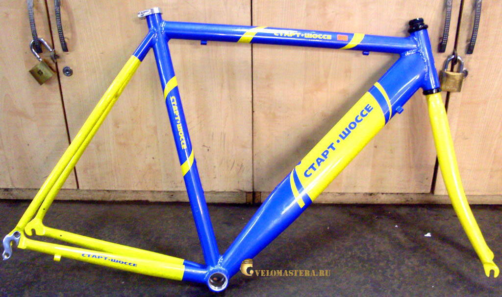 Новую "Старт-Шоссе" которая жёлто-синя можно отбросить сразу. Она очень массивная как для фикси и не нашёл в Интенете описания что делают фикси велосипеды на базе алюминиевых рам.Из оставшихся двух лучше "Велосупер"-это рама ХВЗ "Старт-Шоссе" так называемая спецзаказ.