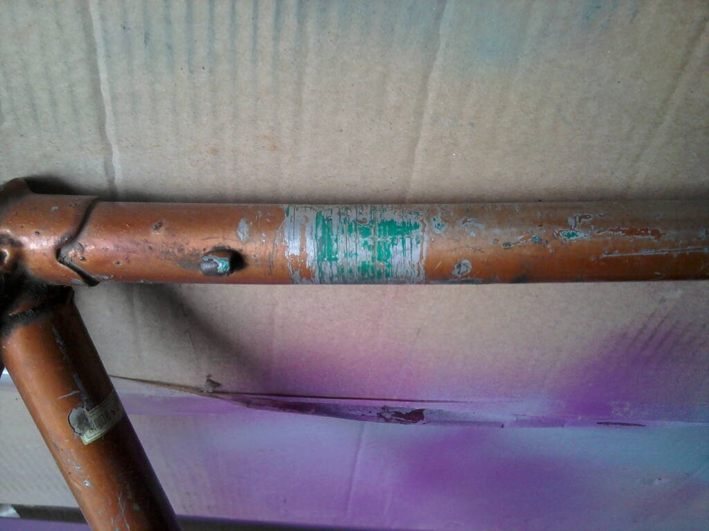 Написано что спутник , но насколько я знаю у спутника узлы на лобие раы фигурные аля старт шоссе , здесь рма один в один с моим туристом начала восьмидесятых,даже мостик такойже . Длна передней трубы больше из за геометрии рамы и наклона вилки. Отвертия протёрты в таких местах что в принципе можно заделать полуавтоматом , эта рама допускает сварку , но сильно вкладываться в неё на мой взгляд не стоит . Верхняя труба реально кривая или это фотоаппарат так исказил?
