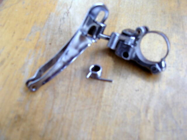 Судя по фото это переключатель от велосипеда ХВЗ. Собирается тяжеловато, надо просто запастись терпением и все получится. Если найду такой у себя в "закромах родины", то сфотографирую. Если есть желание установить современный аналог, то надо подбирать для шоссейных велосипедов.