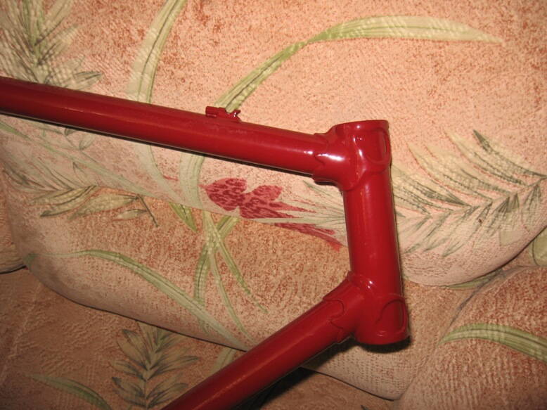 Итак: судя по по хохломе, рама точно производства ХВЗ, причем заднии дропы сделаны как на трековых велосипедах, т.е. колесо вставляется сзади, но очень аккуратно приварен петух. На верхней трубе сверху есть 2-ве длинных бонки (на обычные стартоновские не похожи) для заднего тормоза. Тросики переключателей пропускаются под кареткой через направляющие с отверстиями. Есть бонка для рубашки заднего переключателя. Бонки для переднего переключателя нет. В трубке-перемычке есть отверстие для установки заднего тормоза. Рама была укомплектована вилкой которая тоже отличается от всех, которые я видел ранее: у нее практически круглые (не приплюснутые кук у обычных ХВЗ). ноги и вензель на короне вроде буквы Т с загогулинами. Но резьба на штоке стандартная. Упора под манетки на трубе нет. После пескоструя увидел, что все припаяно очень аккуратно, явно заводская пайка каким-то желтоватым припоем. Что это может такое быть? Получается какая -то треково-шоссейная рама?