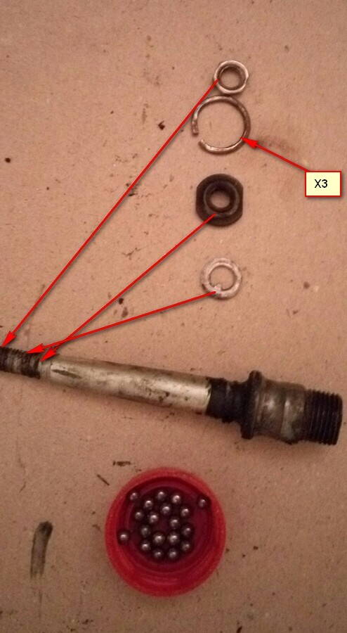 О, Костя вже намалював :smile: Додам ще, в чашки самої педалі намазуєм консистентної змазки, натикаєм шарики, вставляєм вісь і далі нкручуєм все як на мал. kisa Нюанси регуліровки люфтів див. за лінком.